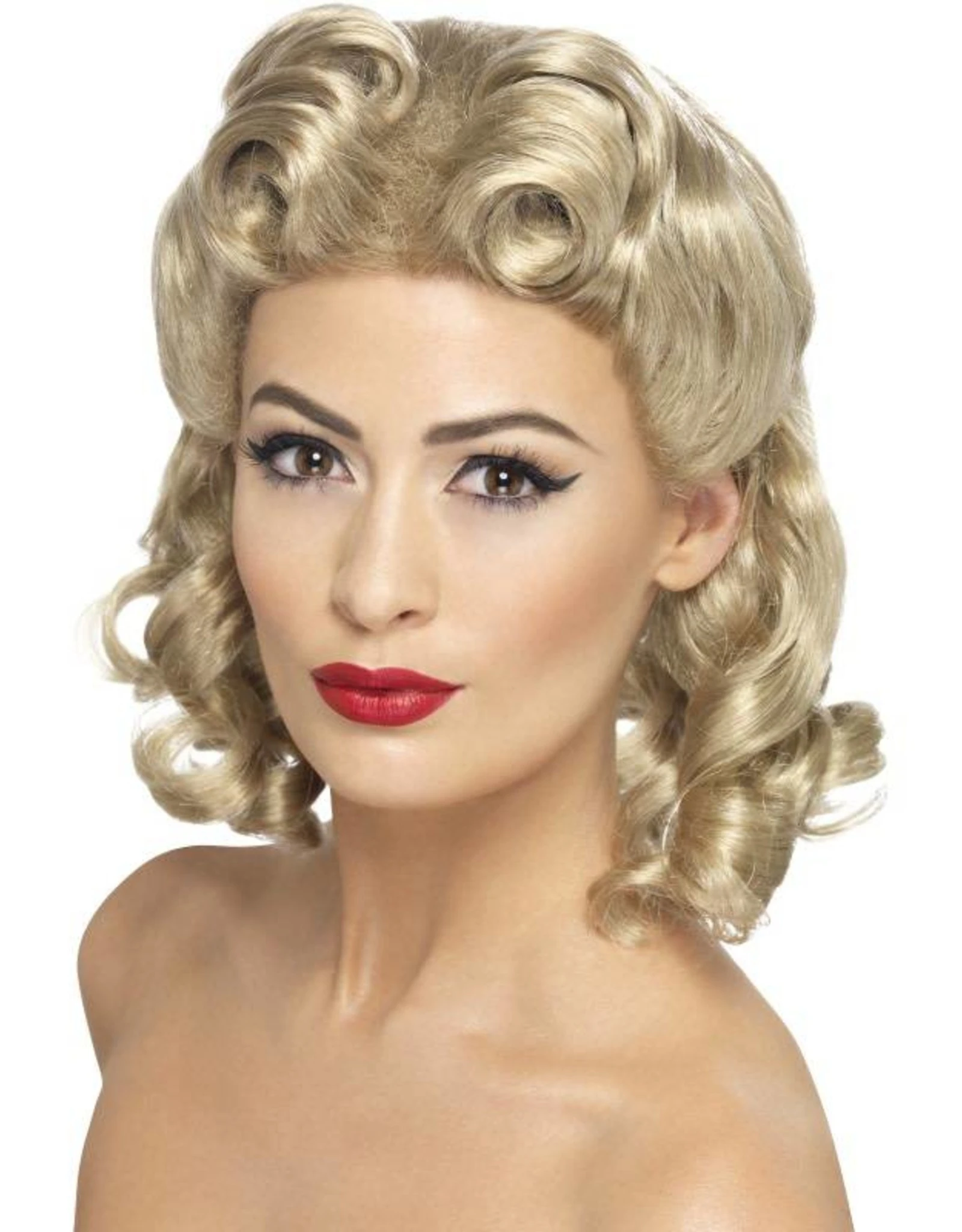 Blonde Jaren 40 Sweetheart pruik met krullen.