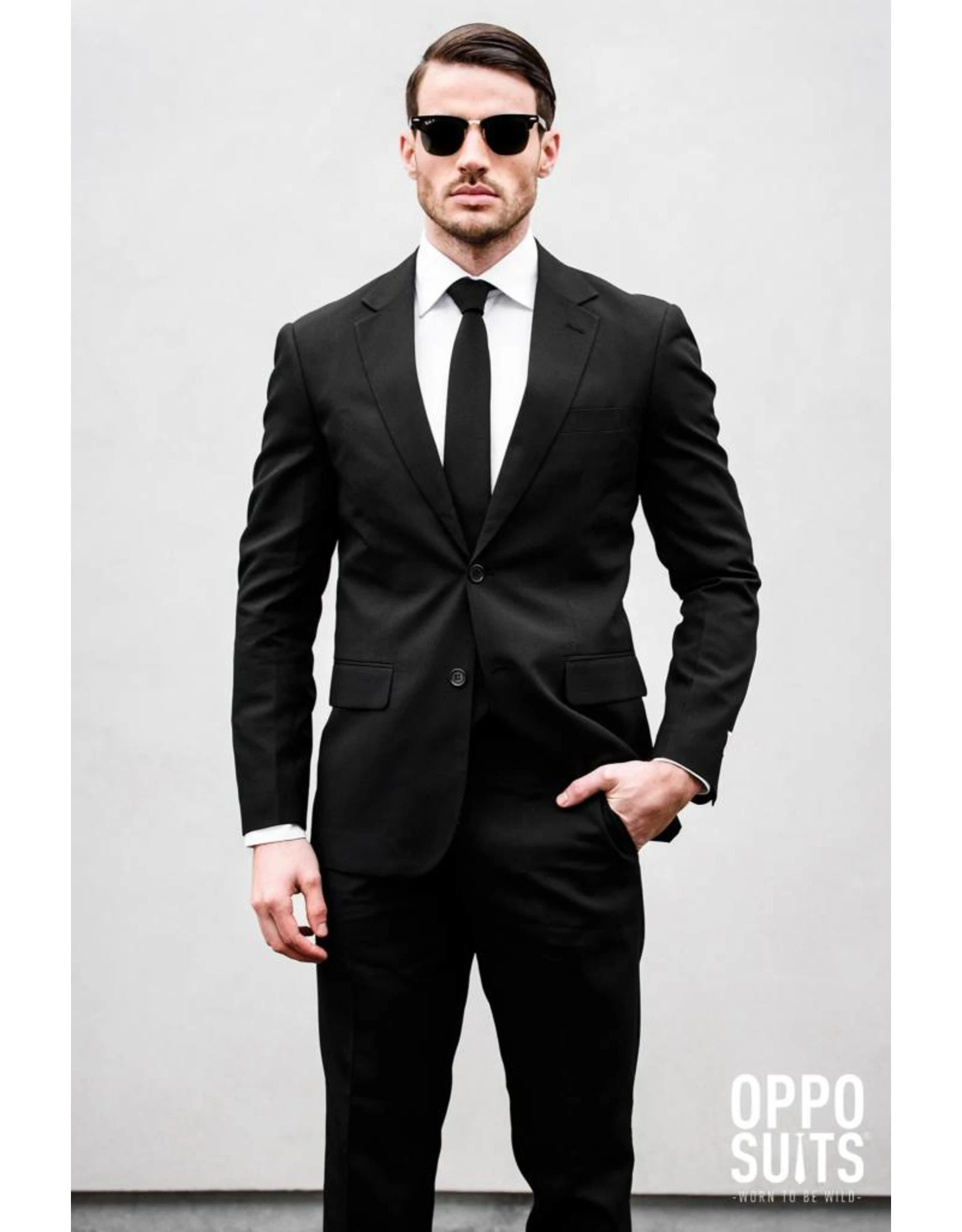 Alsof je zonder training de zwarte band in fashion én feesten hebt gehaald: in dit inktzwarte harnas van OppoSuits voel je je onoverwinnelijk. Dus maak van de nacht je schutkleur, sluip door de schaduwen en doe je ding in het donker.