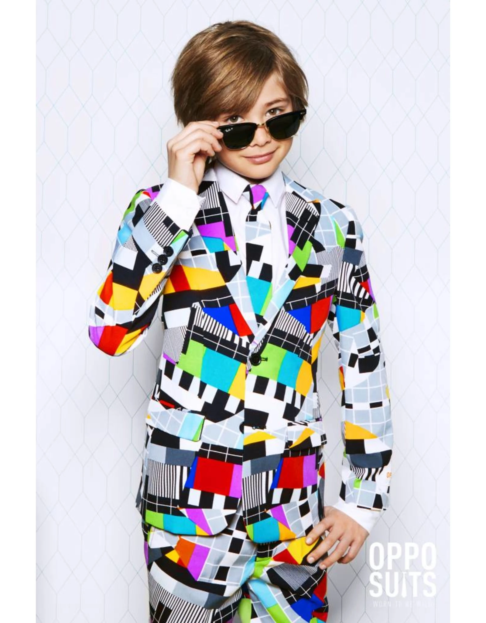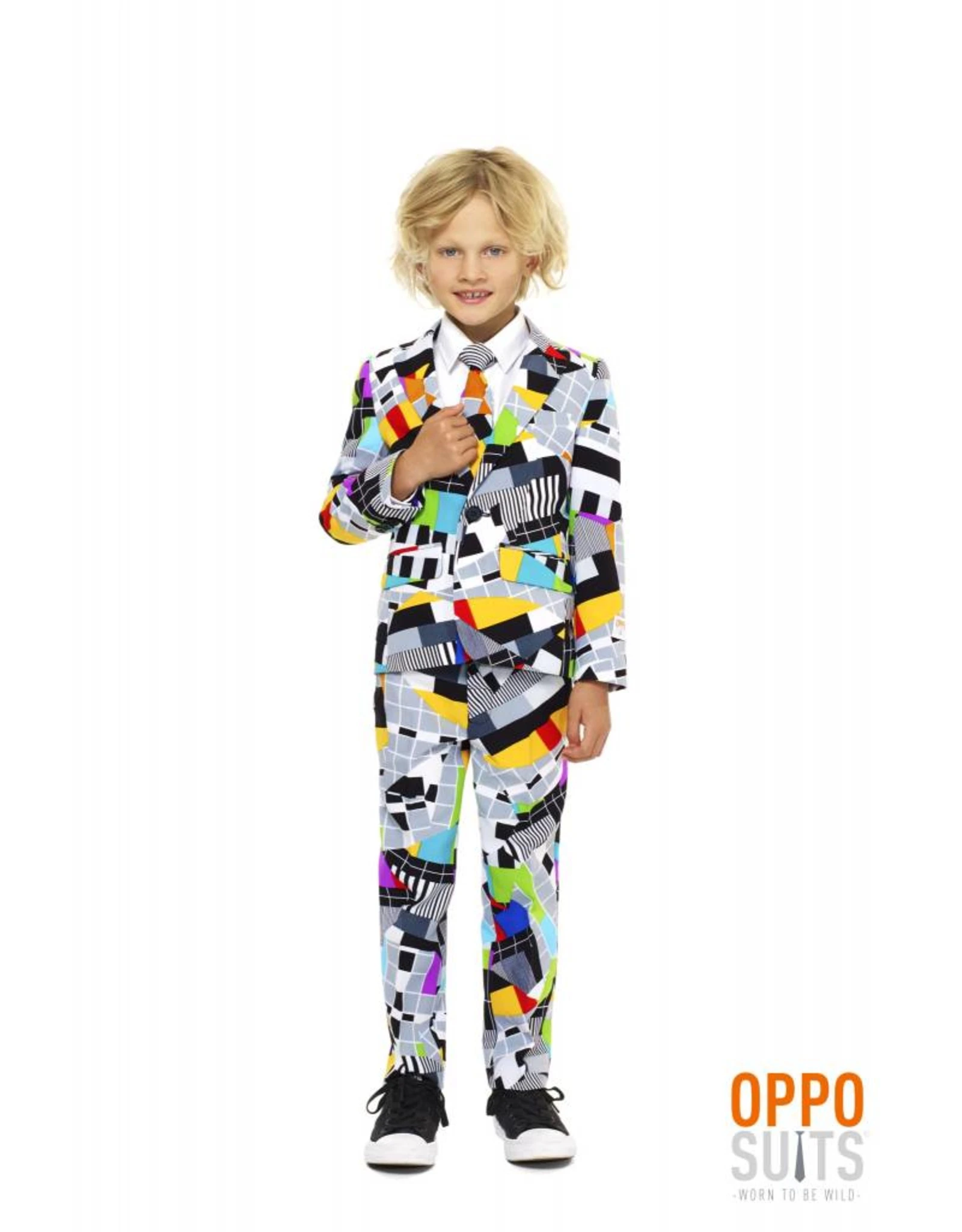 Het kan knap lastig zijn om jonge jongens zich formeel te laten kleden. Maar dit vrolijk gekleurde Testival pak aan de man te krijgen is simpel als ABC. De retro print zal van iedere jongen een blikvanger maken!
