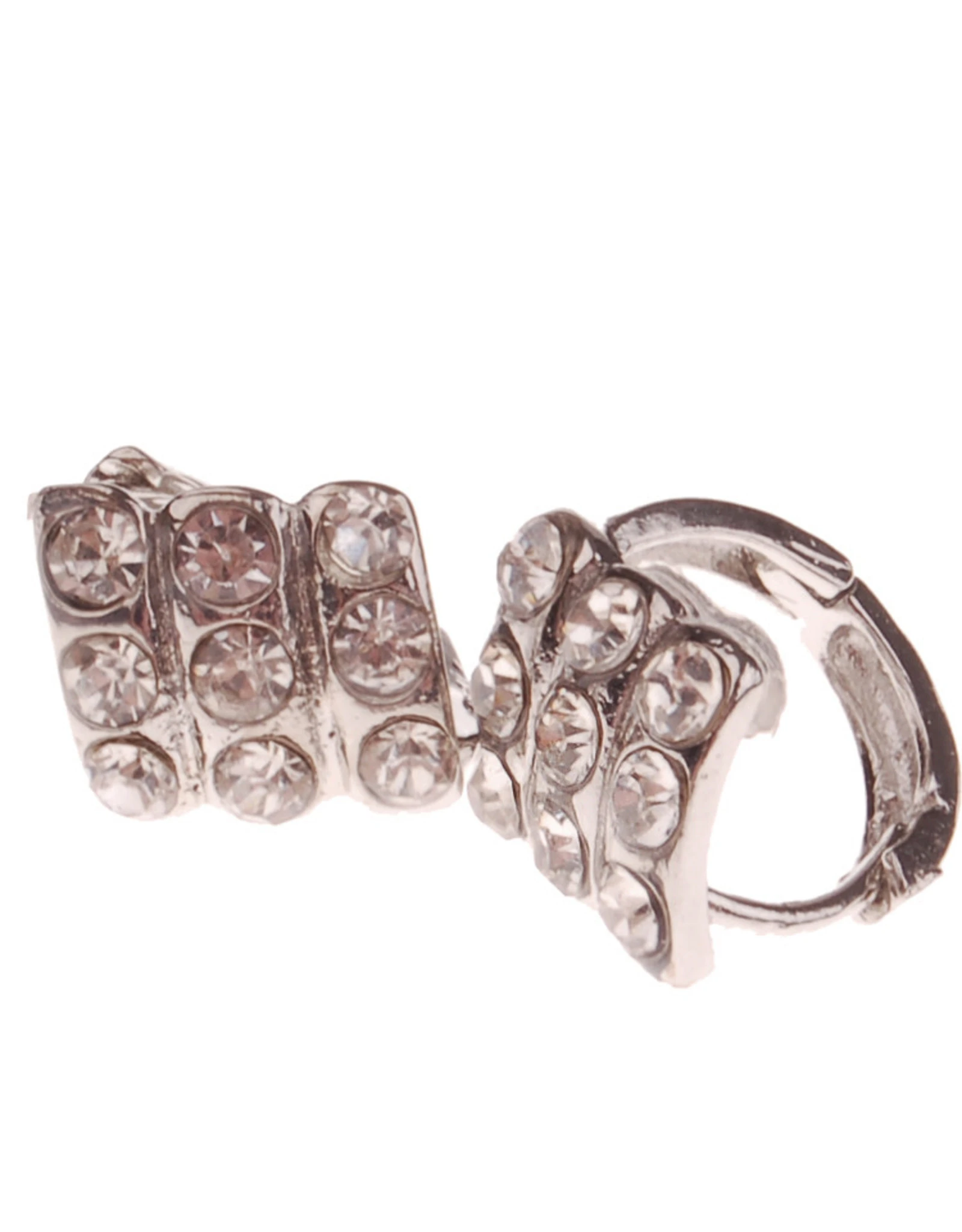 De oorbellen zijn bezet met blanke strass steentjes.