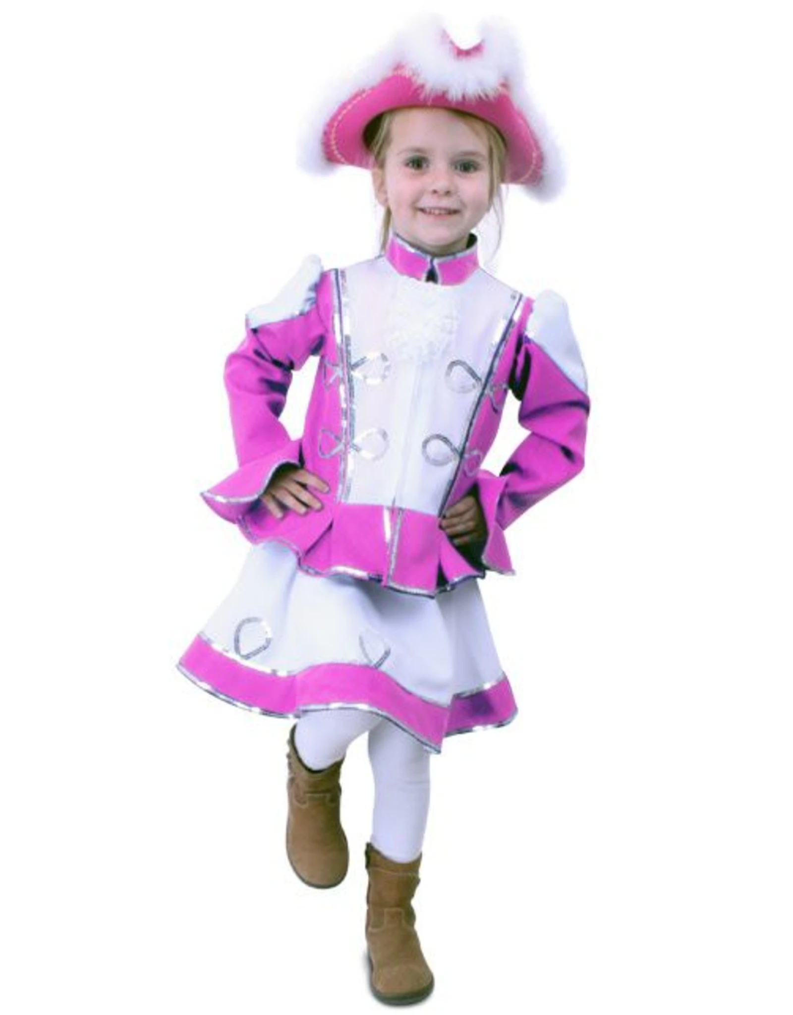 Dit kostuum bestaat uit een jasje met rokje.