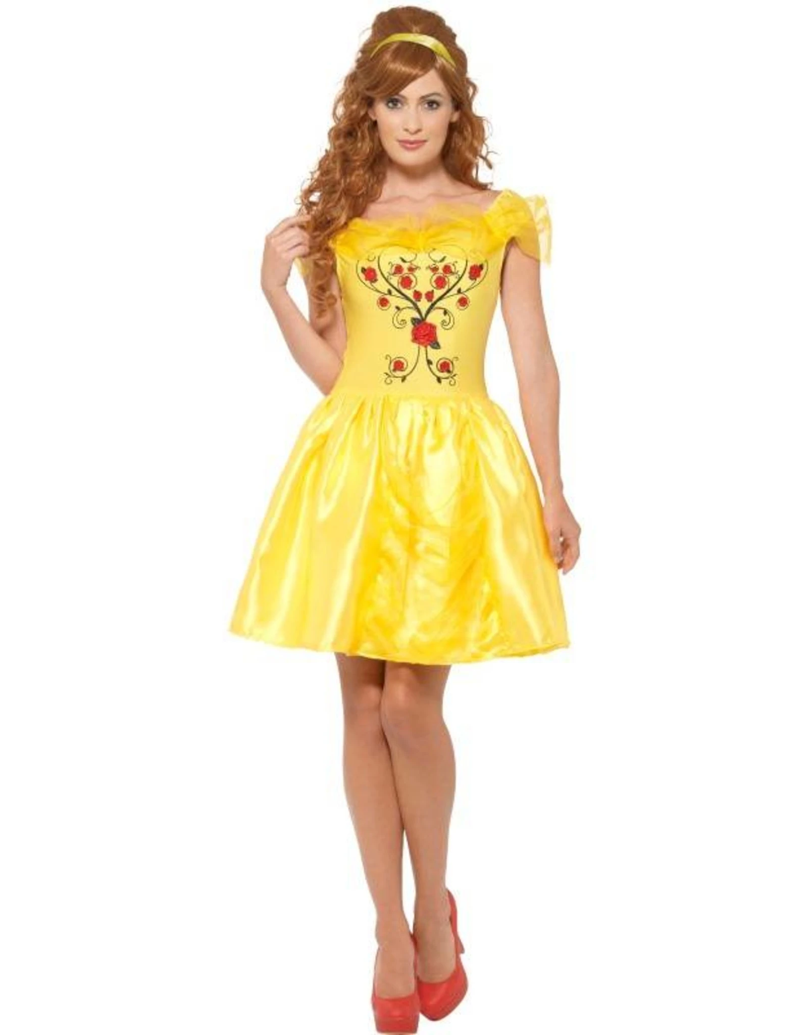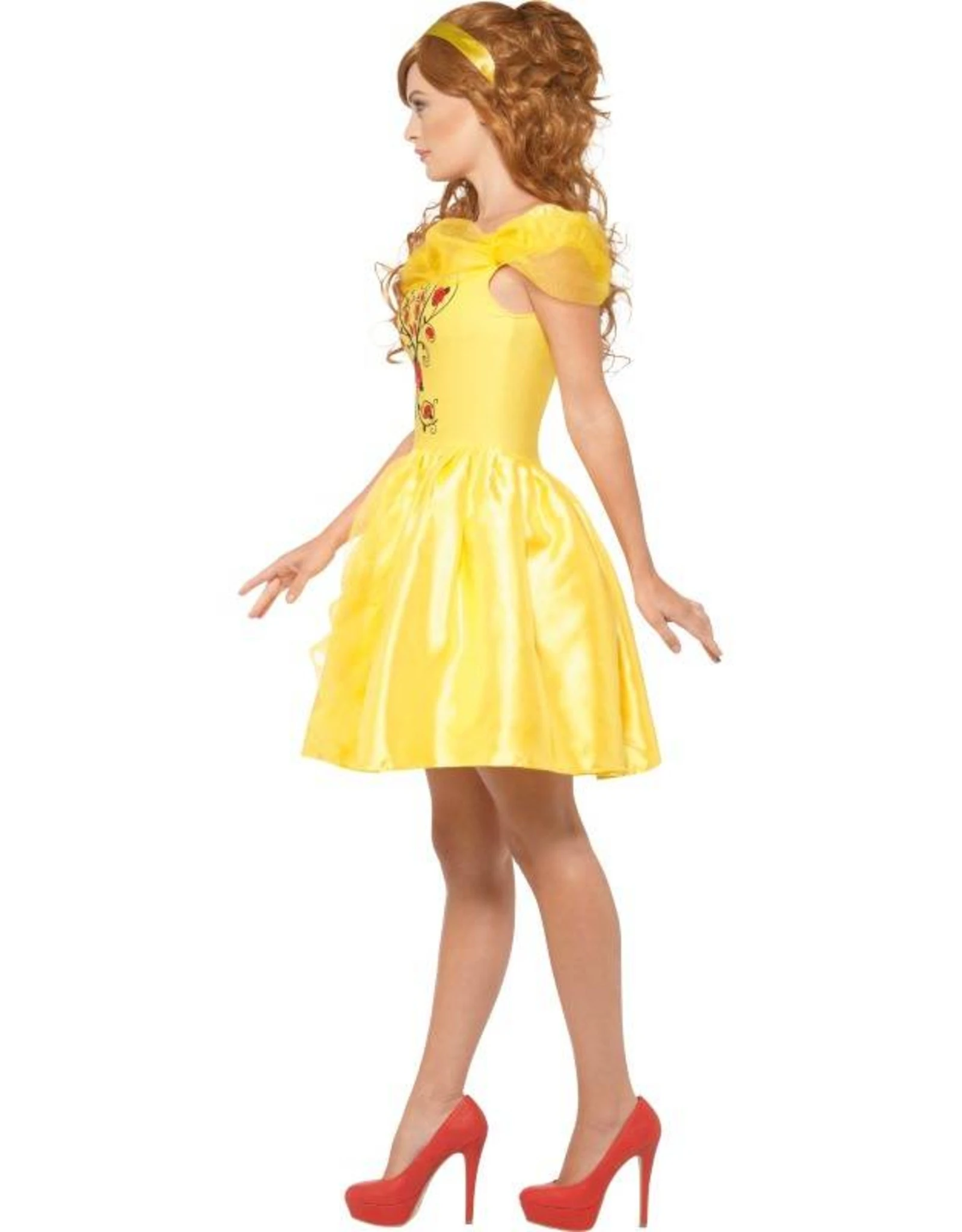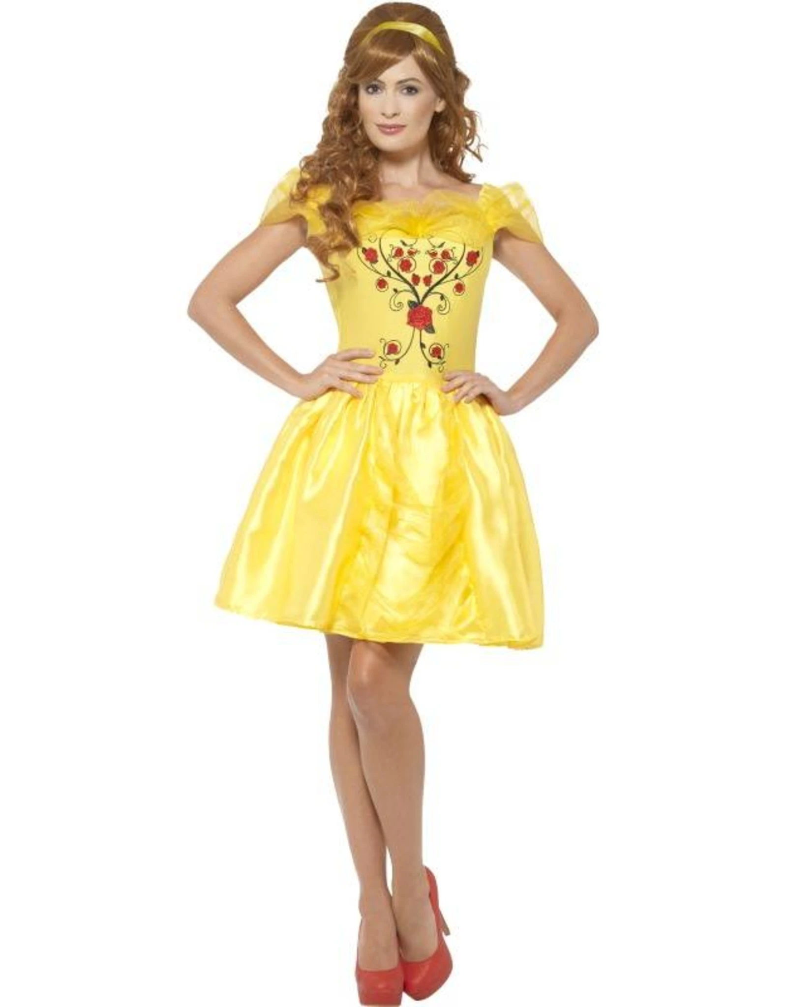 Dit kostuum bestaat uit een bedrukte jurk met haarband