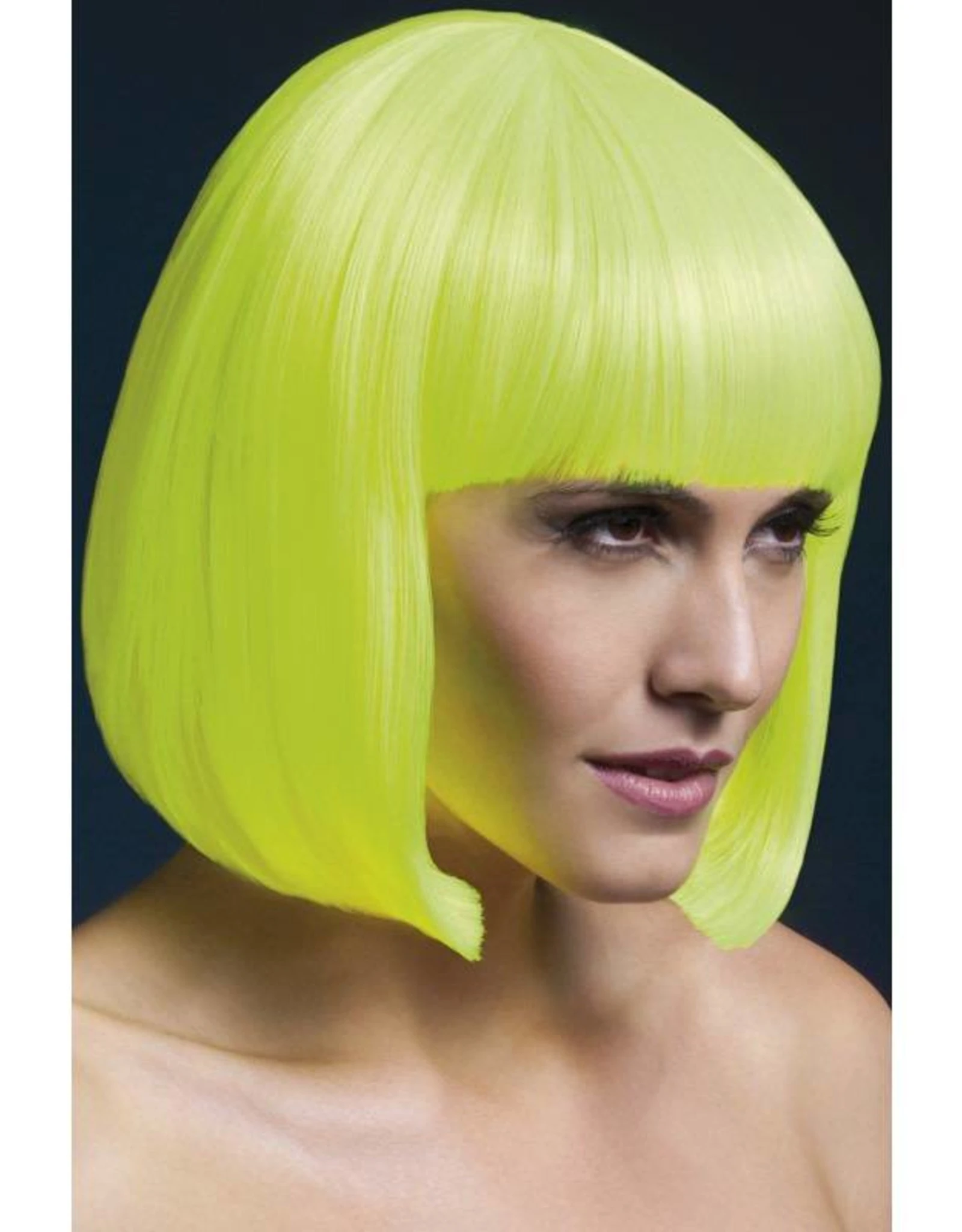 Fever Elise Pruik, Neon Geel, Lange bob met pony, 33 cm lang