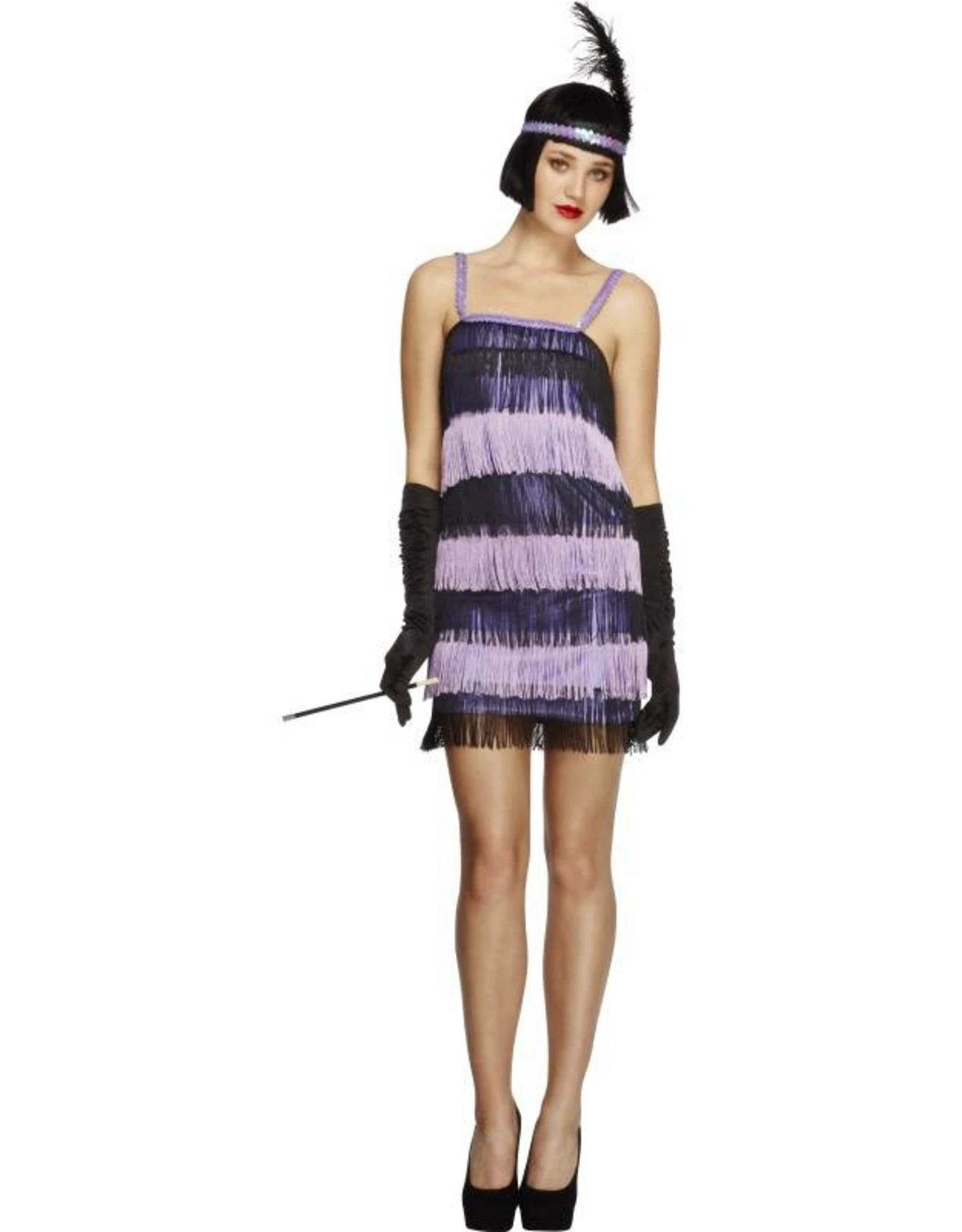 Dit kostuum bestaat uit een jurk en haarband met veer