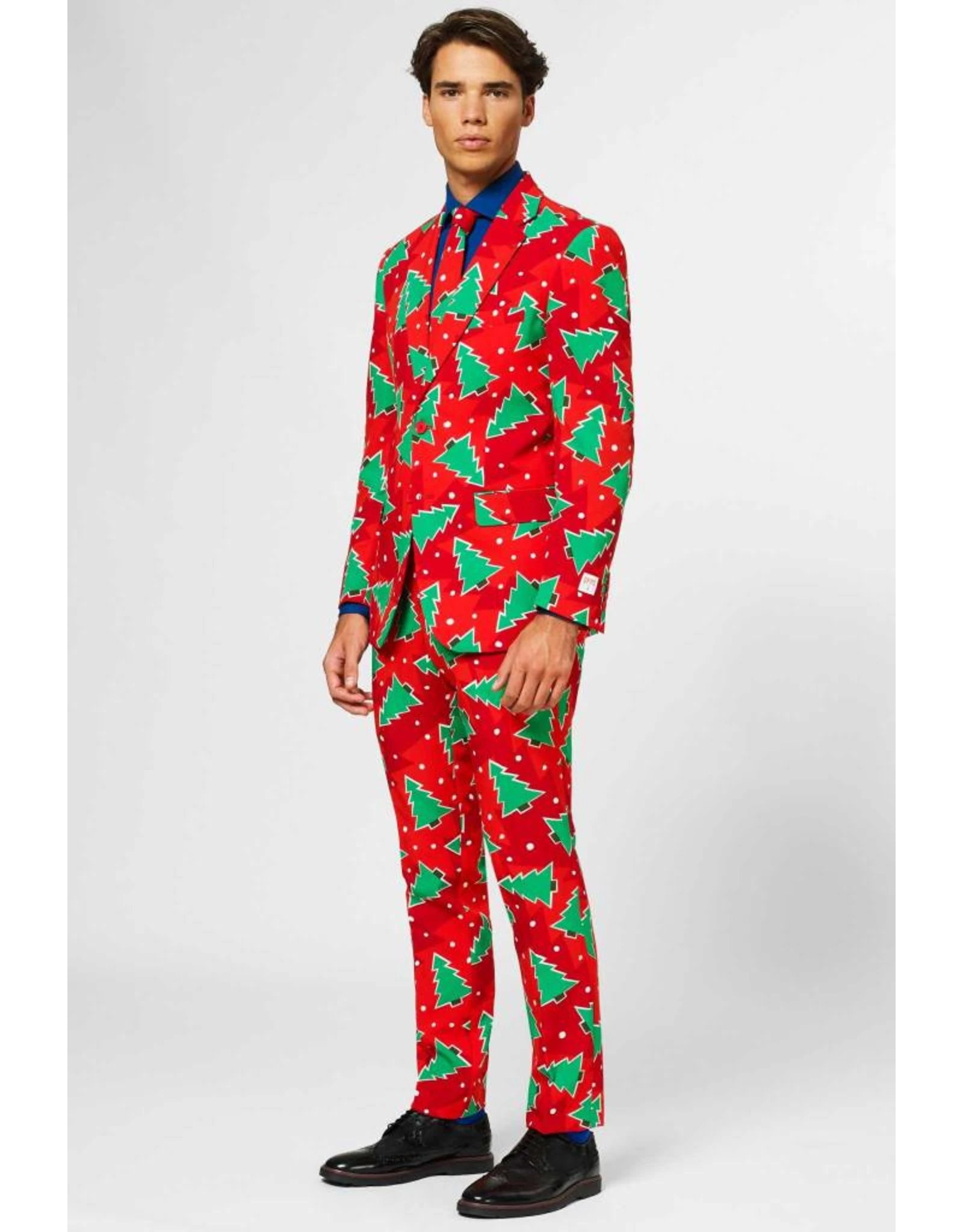 Heb je het gevoel dat je versierd wordt door deze kerstboom? Begrijpelijk, want dit pak is de ultieme outfit voor het kerstseizoen. Meestal is de kerstboom het middelpunt van het huis tijdens de feestdagen, maar deze keer kan jij de feestelijke eye-catcher zijn met dit stijlvolle kerstbomenpak.