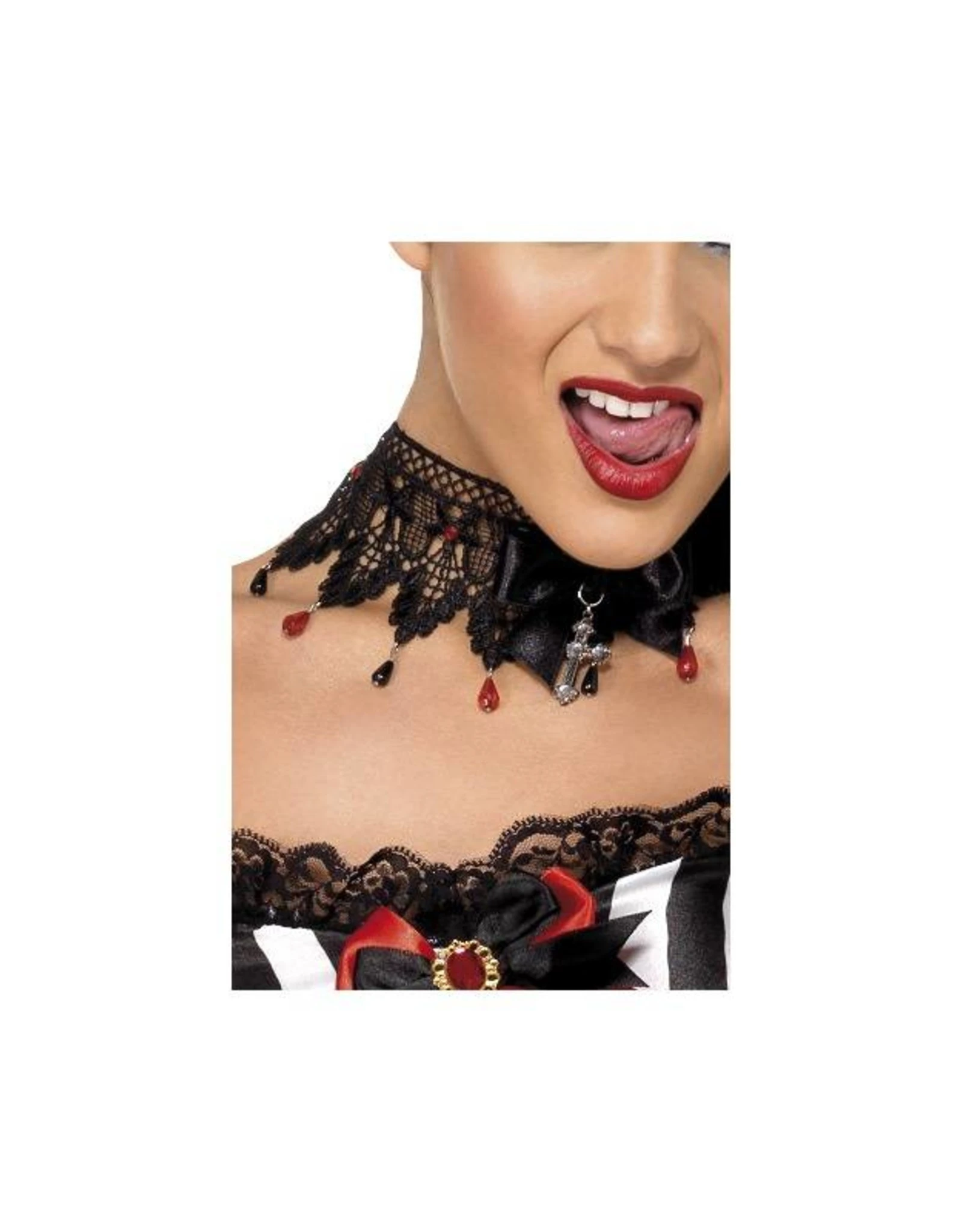 Gothic Halsketting afgezet met kant, zwart