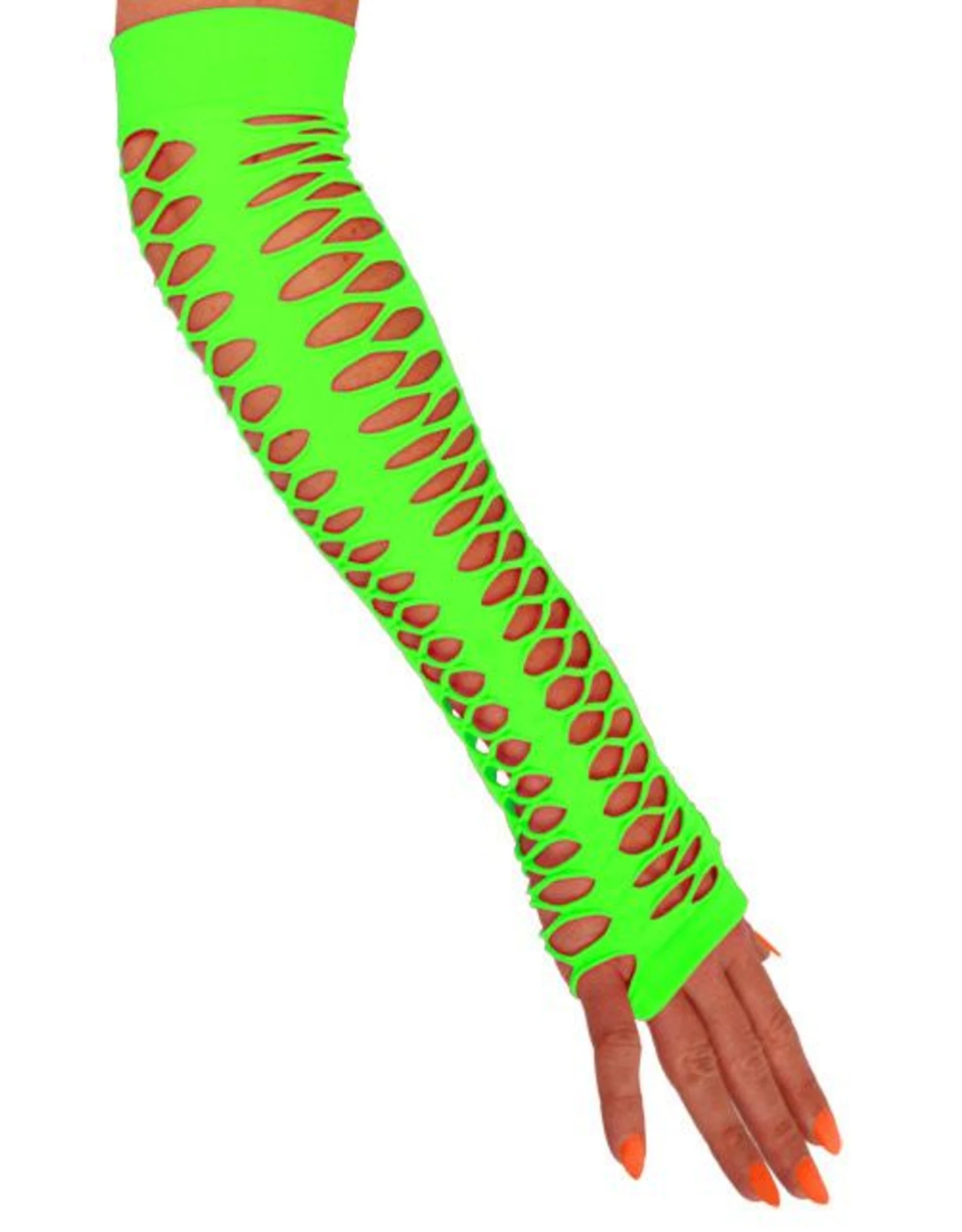 Handschoenen vingerloos grote gaten fluor groen 40 cm