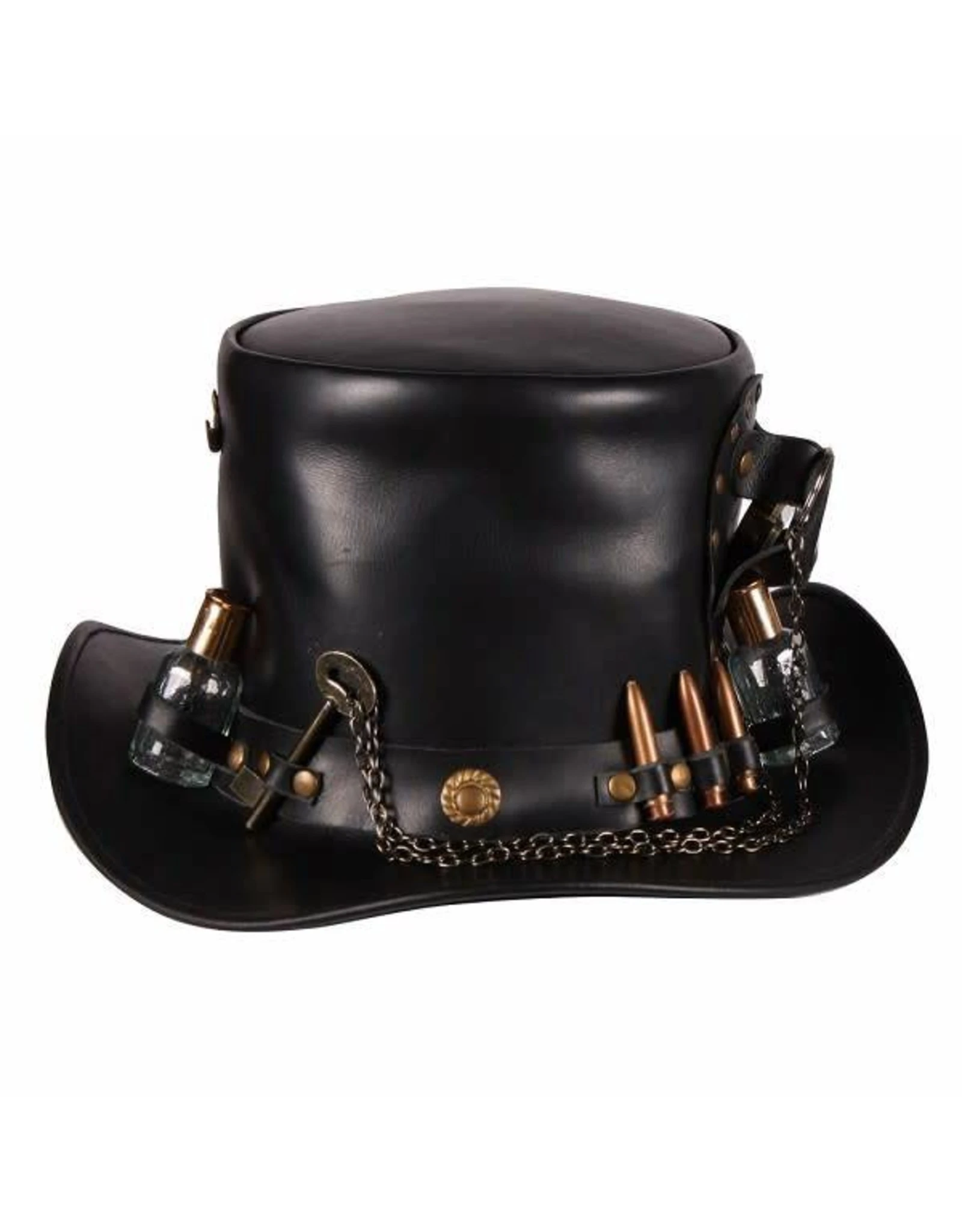 Hoge hoed leer “Steampunk deluxe” , Zwart