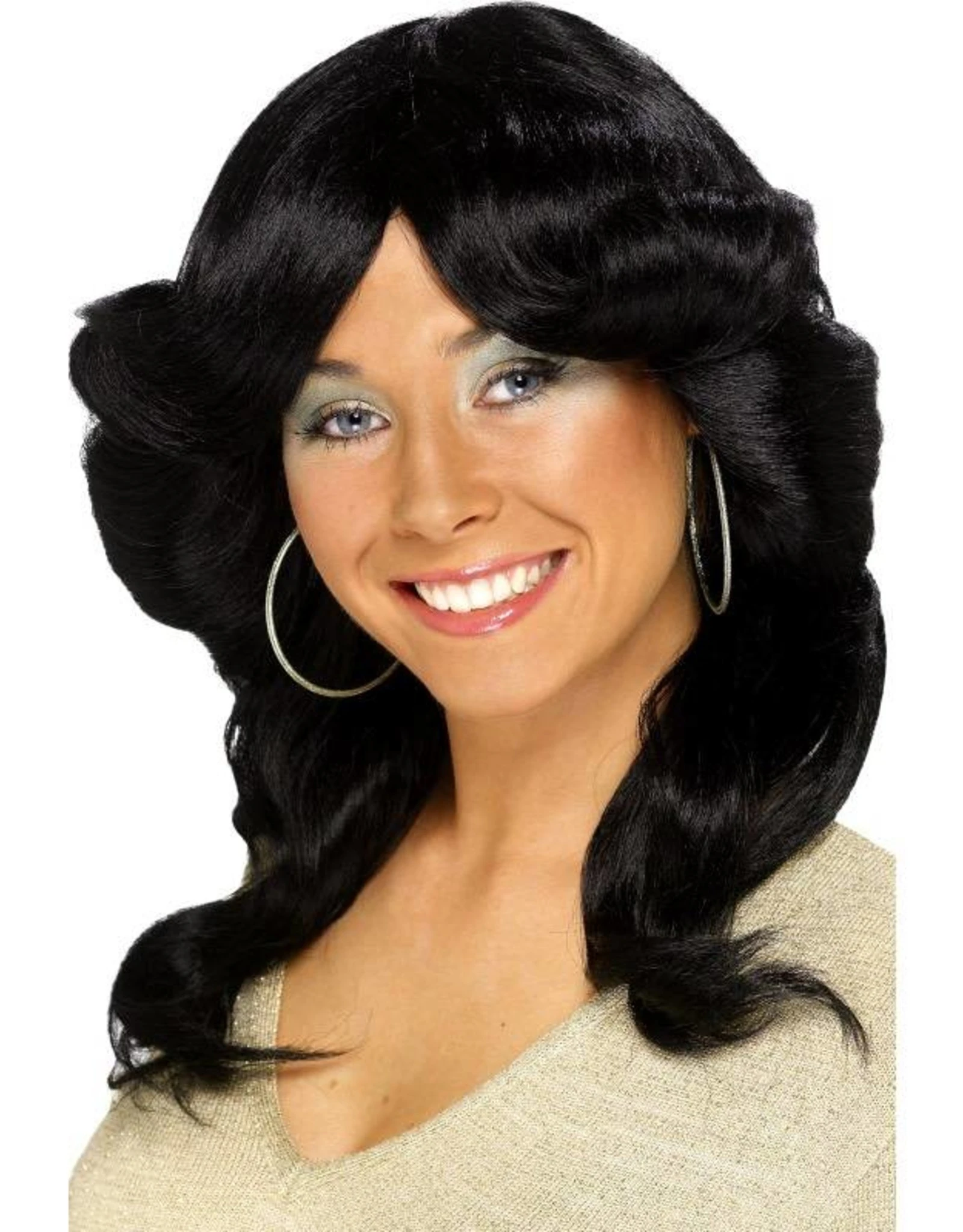 jaren 70 flick pruik, zwart