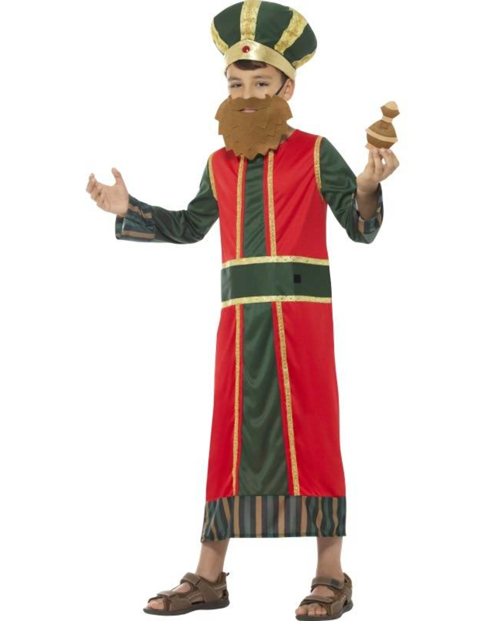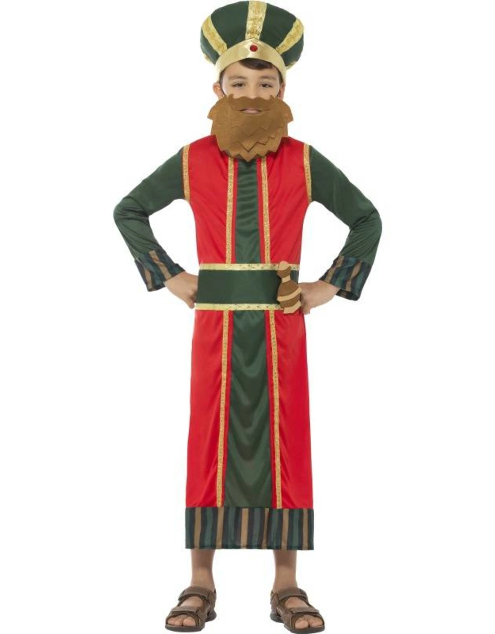 Dit kostuum bestaat uit een jurk, hoofddoek, baard, riem met een wierook flesje.