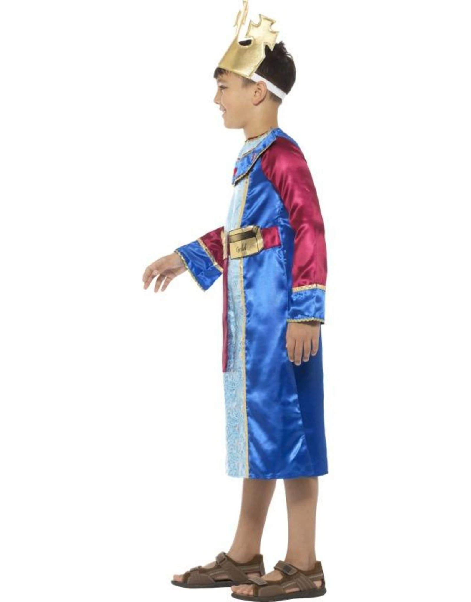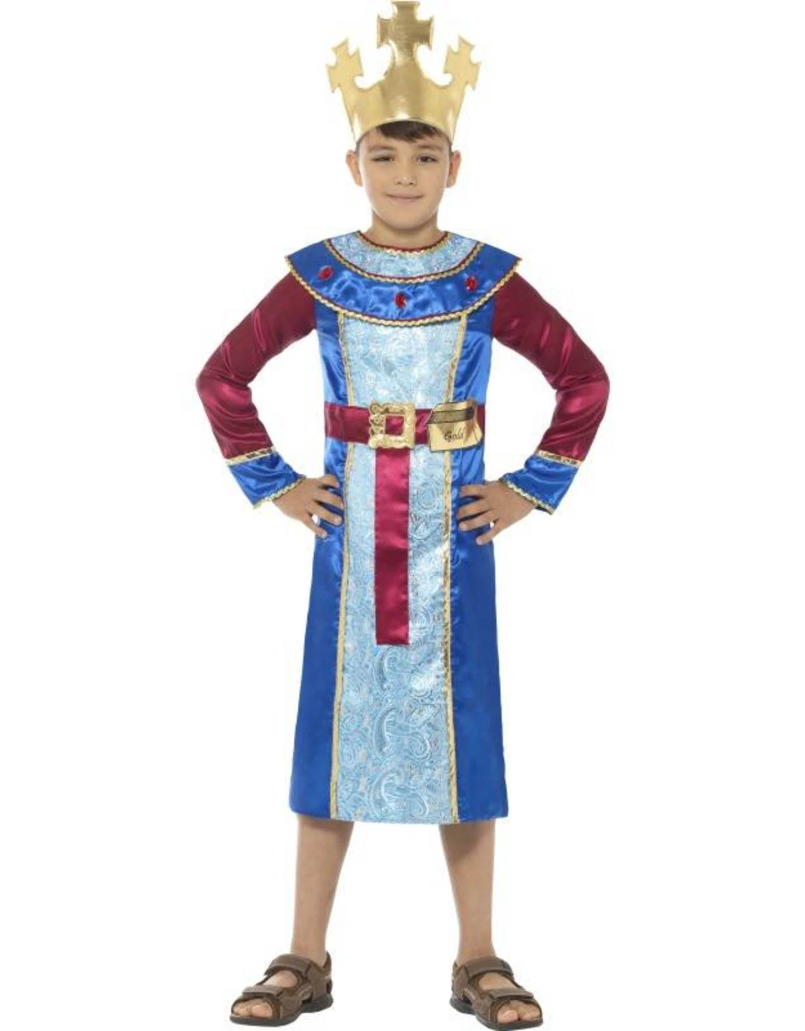 Dit kostuum bestaat uit een jurk met aangehechte goudstaaf en kroon.