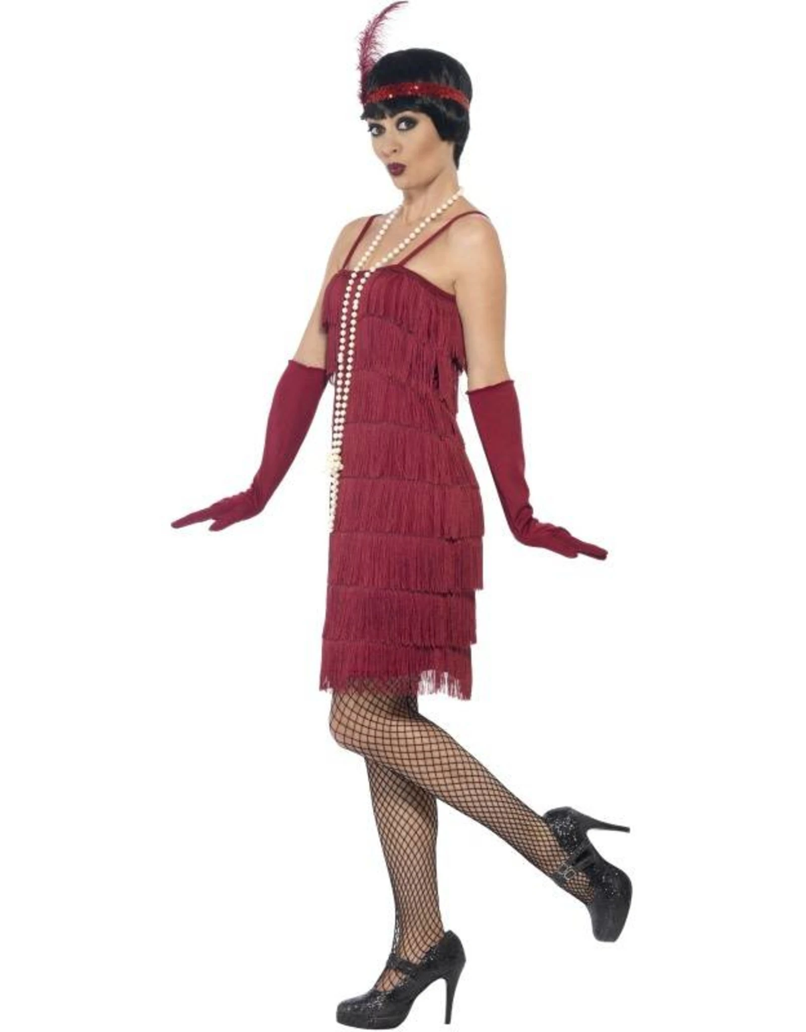 Dit kostuum bestaat uit een korte jurk met haarband en handschoenen
