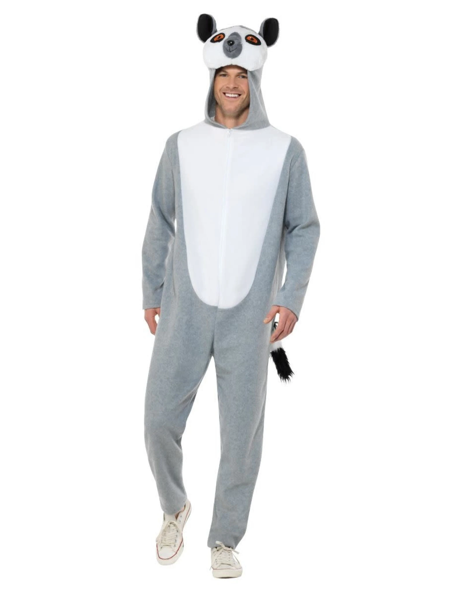 Dit kostuum bestaat uit een jumpsuit met capuchon.