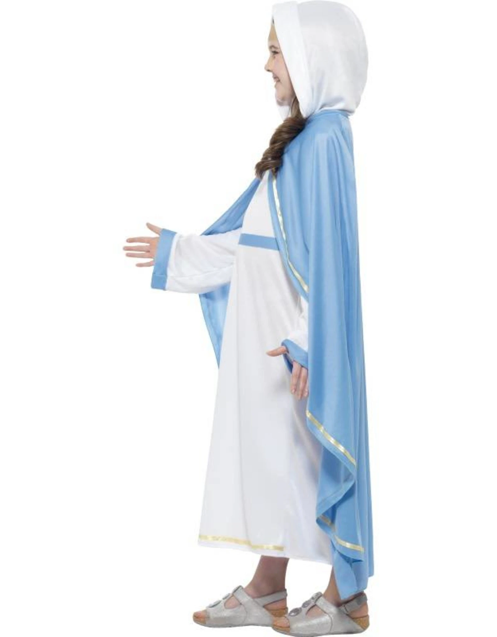 Dit kostuum bestaat uit een jurk, hoofddoek, cape en riem.