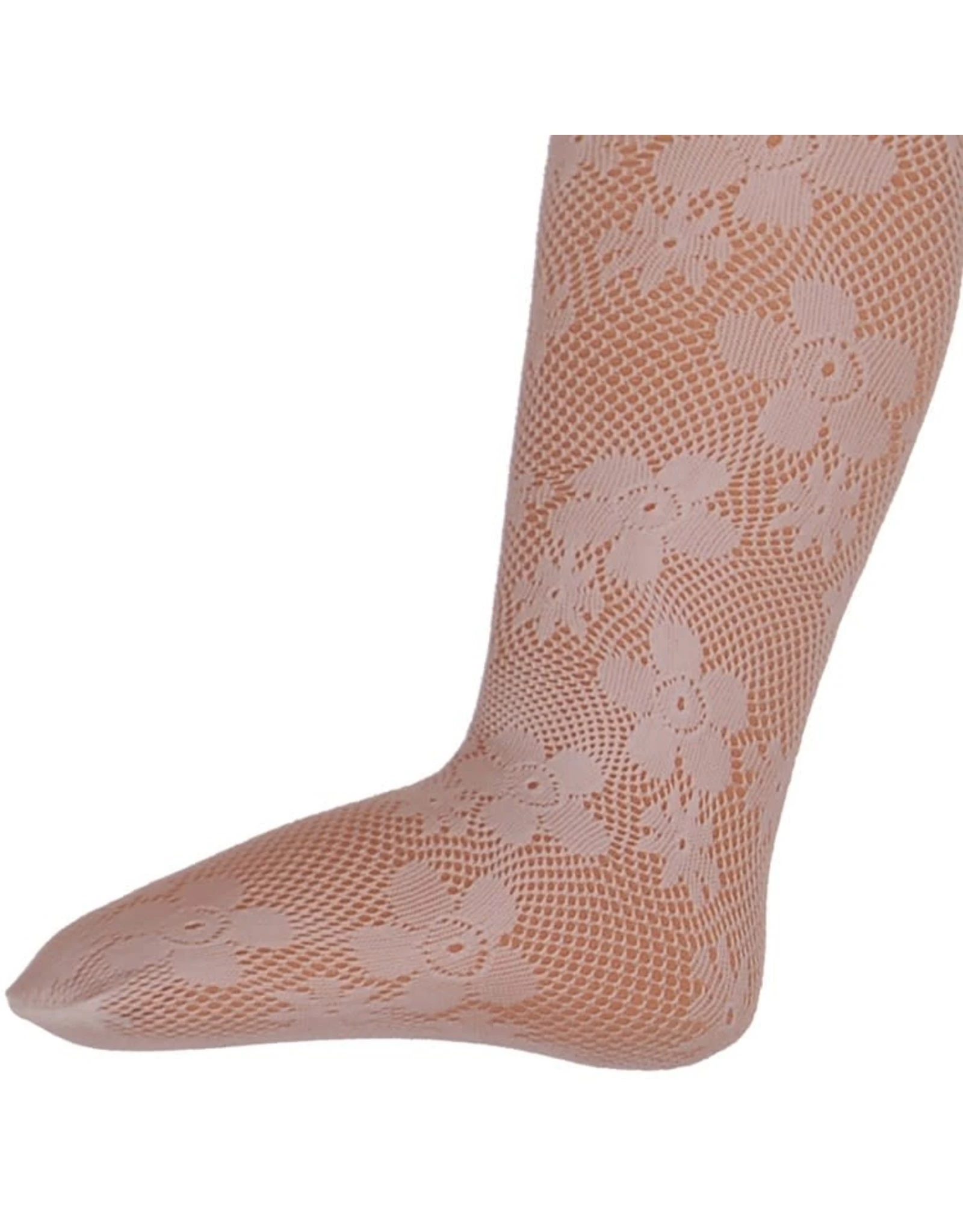 Ivoorkleurige panty’s met gehaakte bloemen.