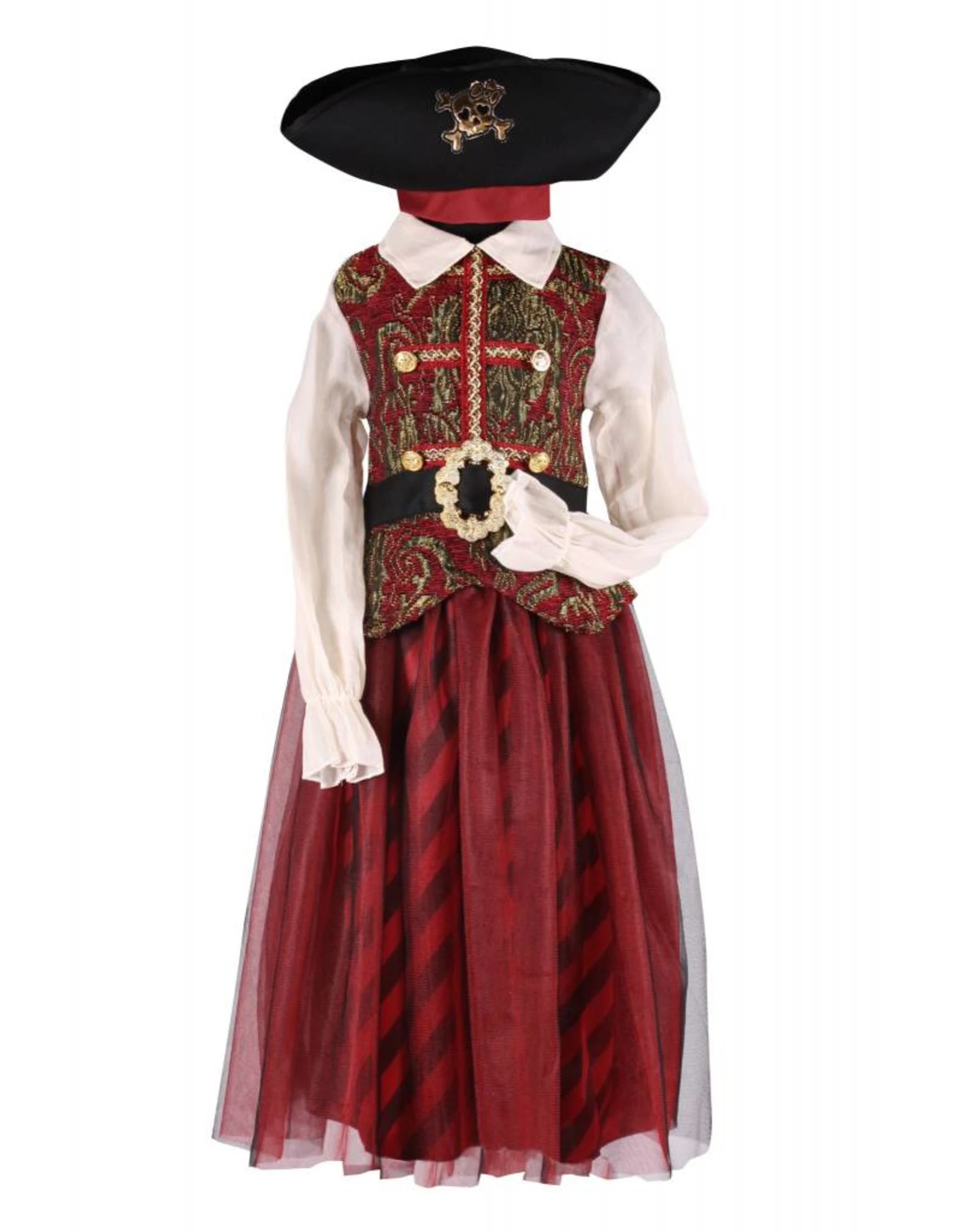 Dit kostuum bestaat uit een jurk, hoed en beenkappen