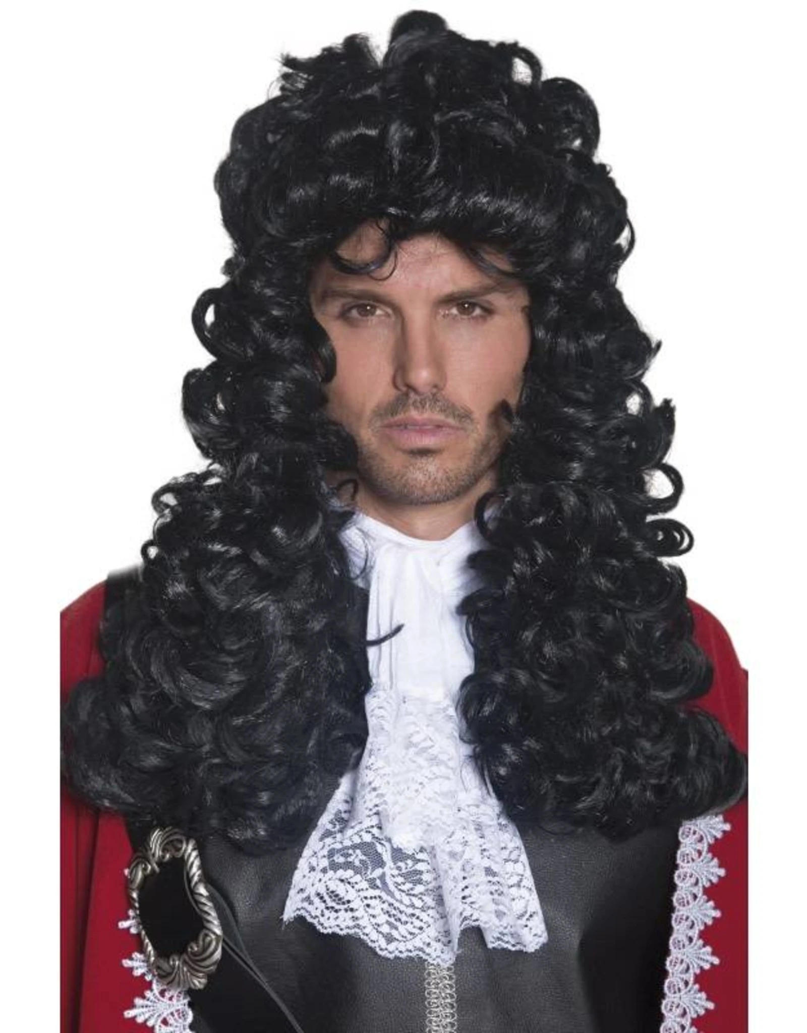 Piraten Kapiteinspruik Zwart, lang met krullen