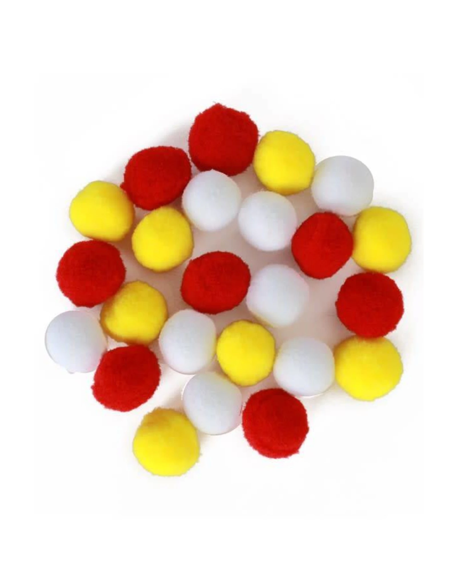 Pom pom 2 cm rd-wt-gl 24 stuks