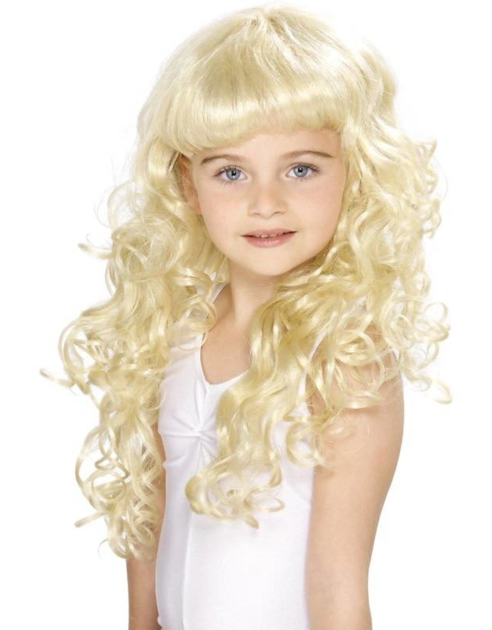 Blonde prinsessenpruik met krullen en pony.