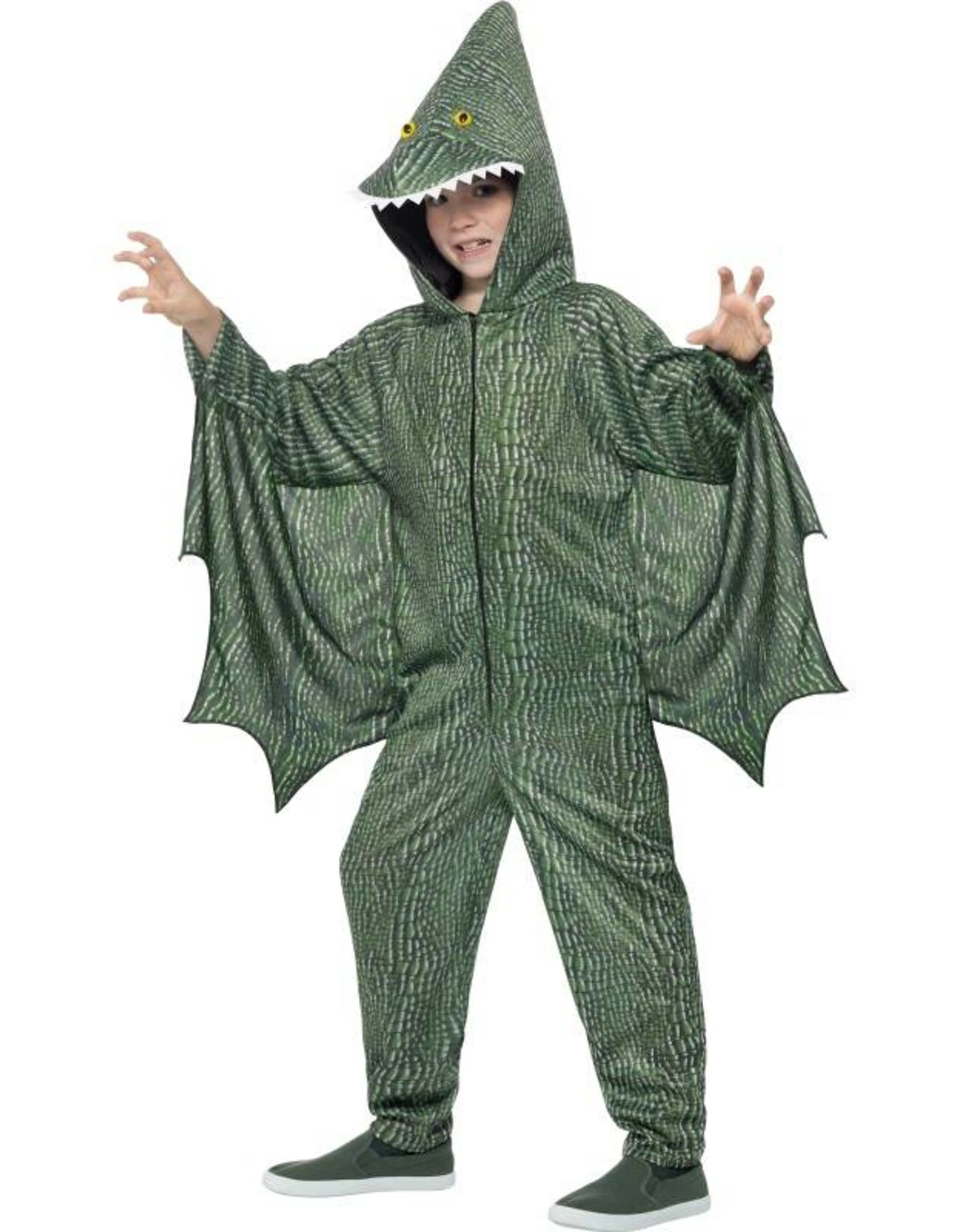 Dit kostuum bestaat uit een jumpsuit met capuchon en vleugels.