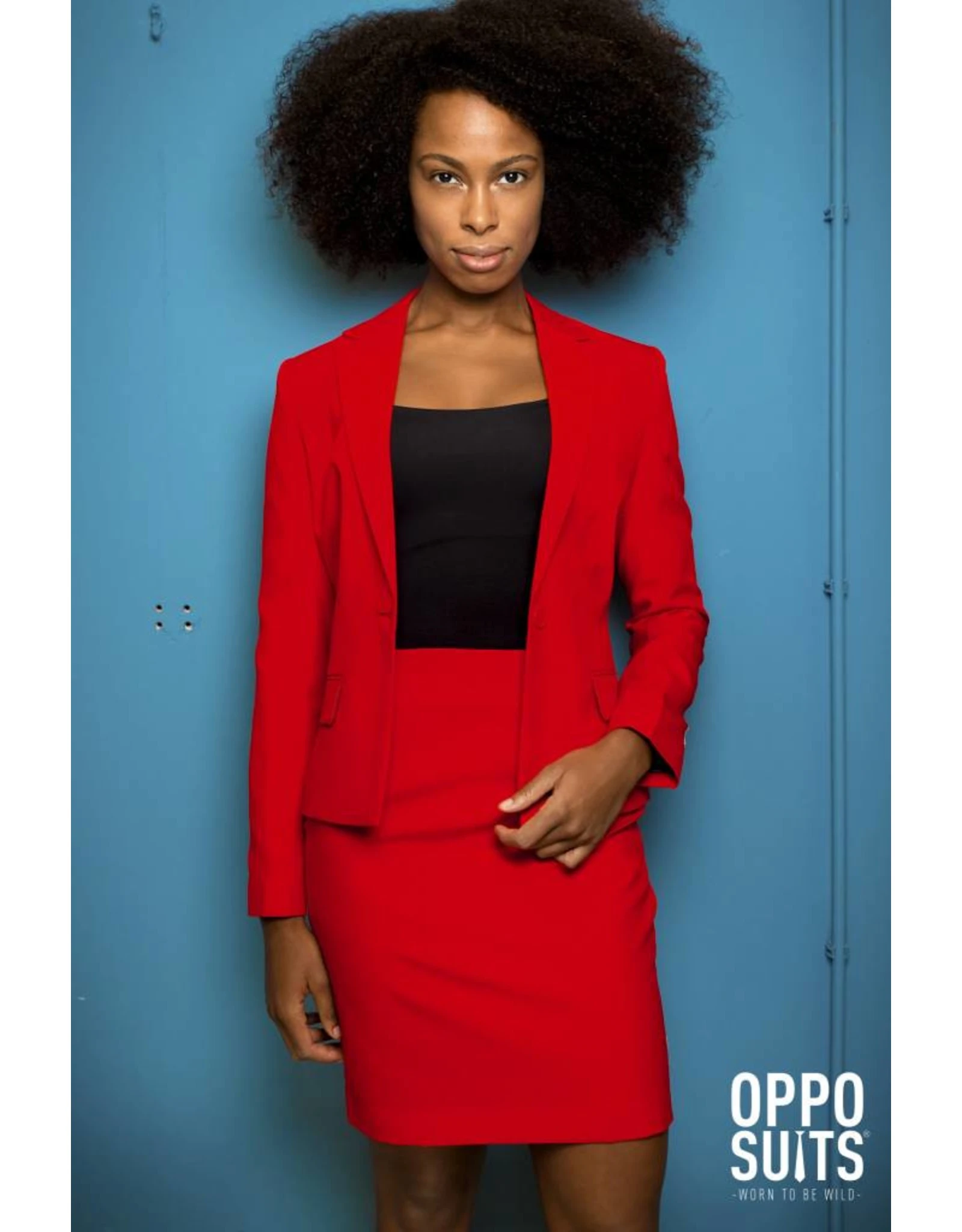 Rood. The Red Ruby is de kleur van de liefde maar ook die van haat. Om eerlijk te zijn, wij als opposuits, maakt het niet uit aan welke kant je staat, zolang je er maar goed uitziet wanneer je een kant kiest. Of je het nu haat of ervan houdt, je zal er hoe dan ook fantastisch uitzien in dit rode mantelpakje voor vrouwen.