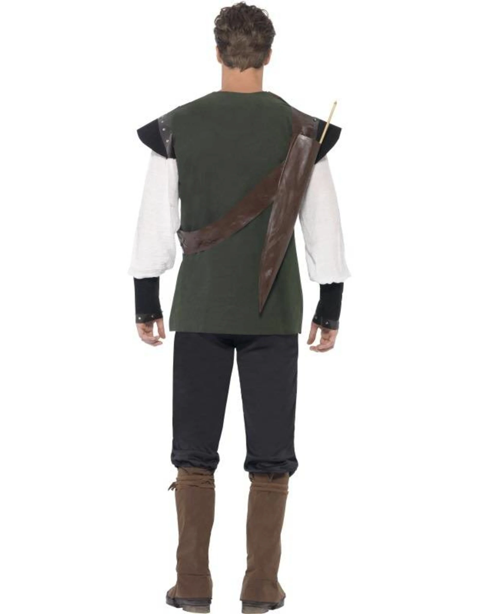 Dit kostuum bestaat uit een shirt, broek, riem, houder voor pijlen en laarskappen.