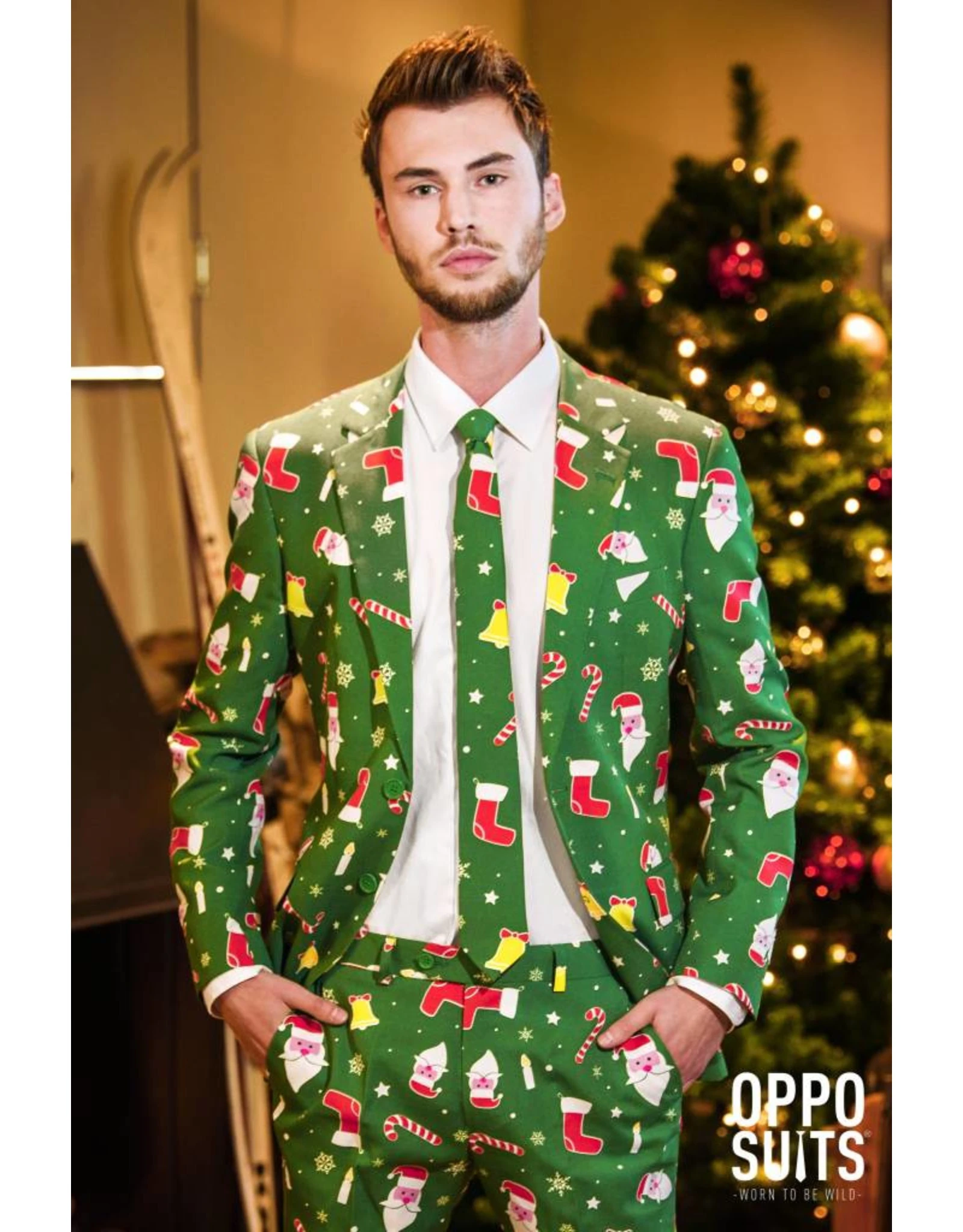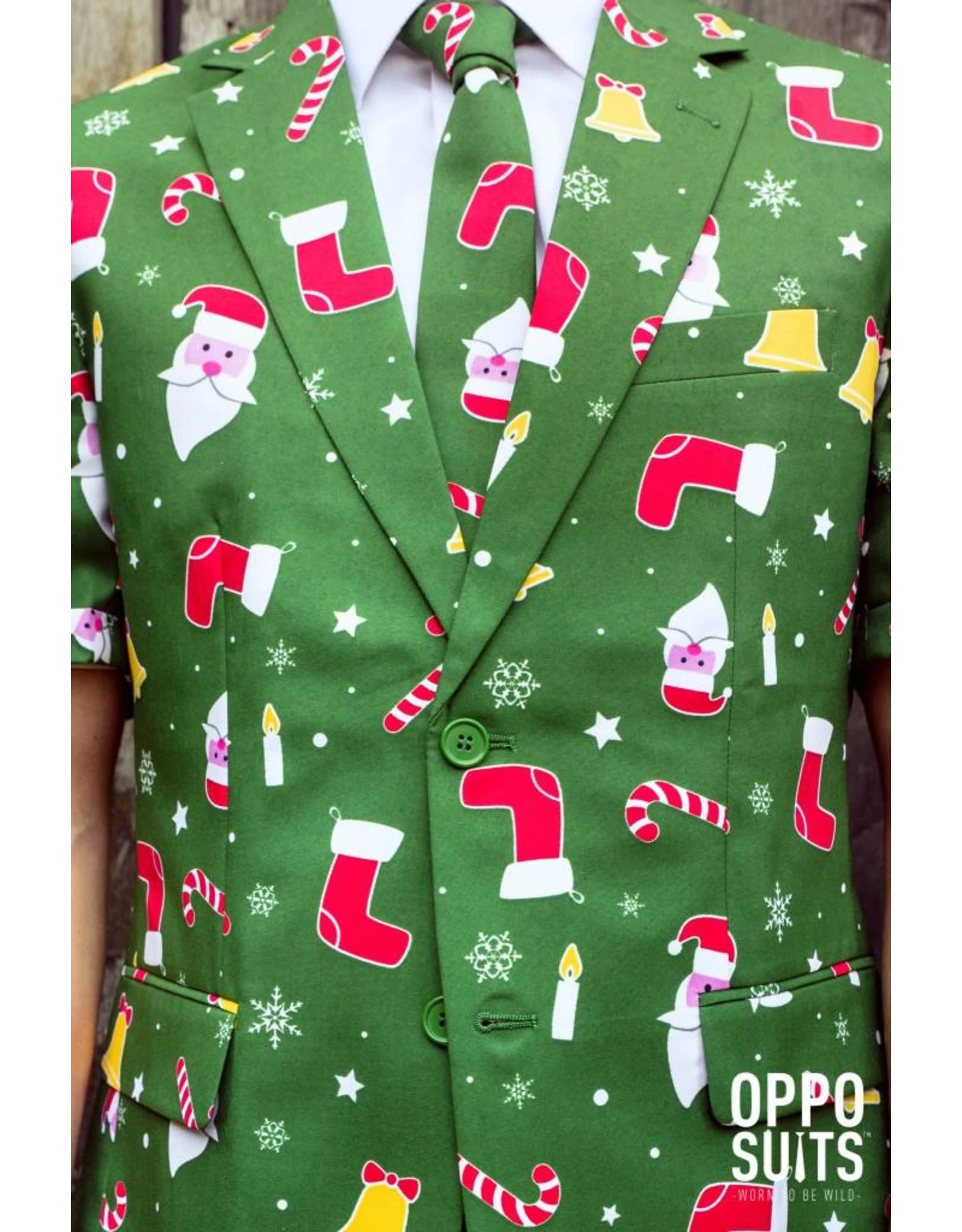 Geef al die ugly christmas sweaters het nakijken en kroon jezelf tot kerstkoning op elk feest. Met deze groene jongen van OppoSuits om je schouders weet iedereen precies wie de baas is.