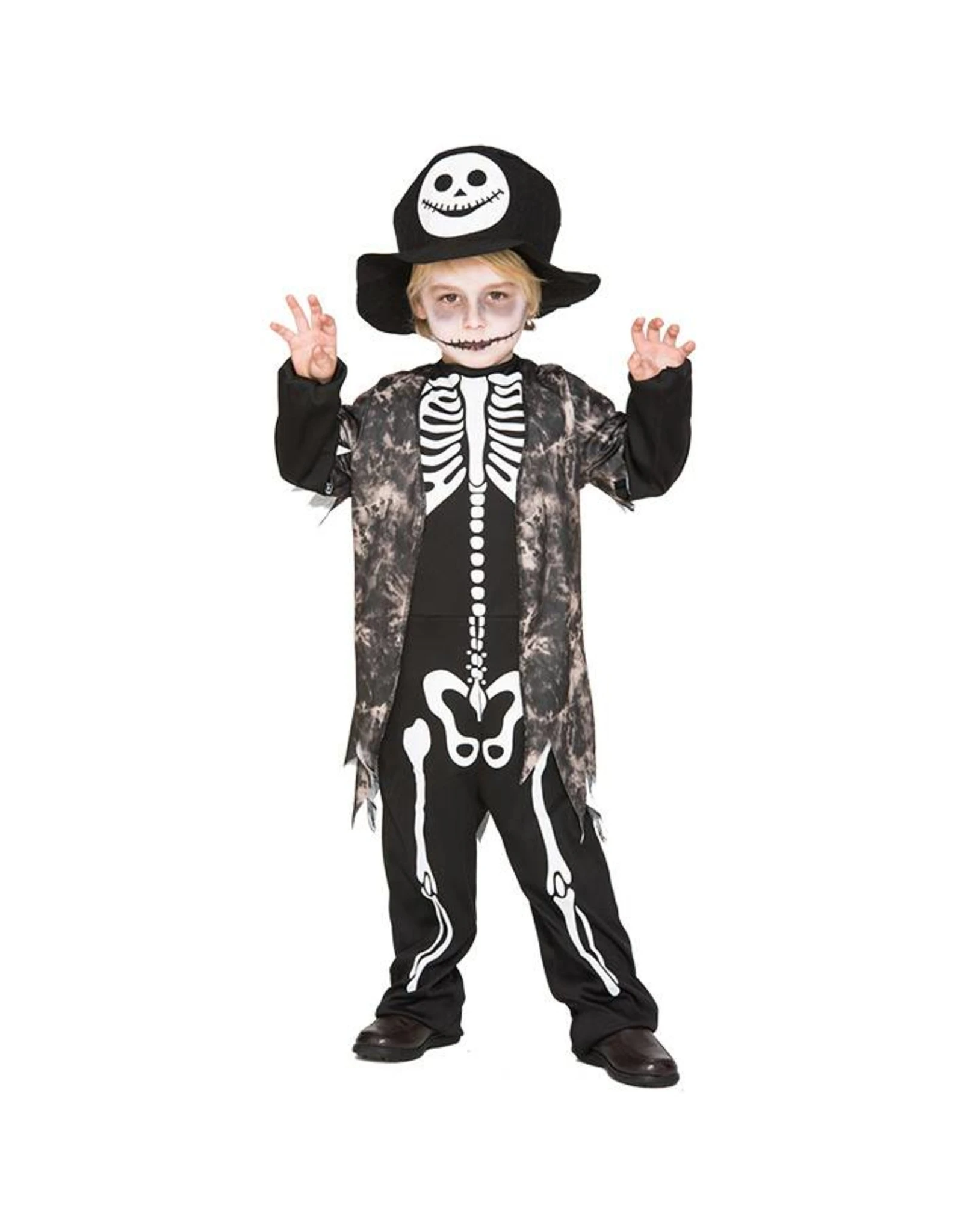 Dit kostuum bestaat uit een jumpsuit, hoed en vest.