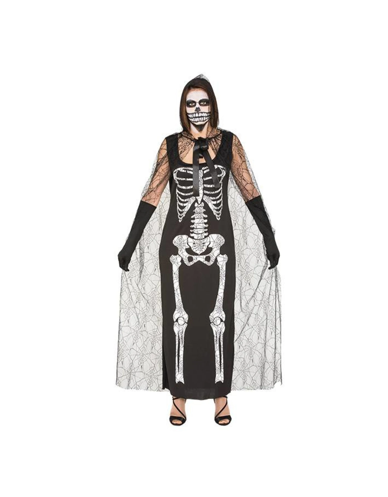 Dit kostuum bestaat uit een jurk, spinnenwebcape met capuchon en handschoenen.