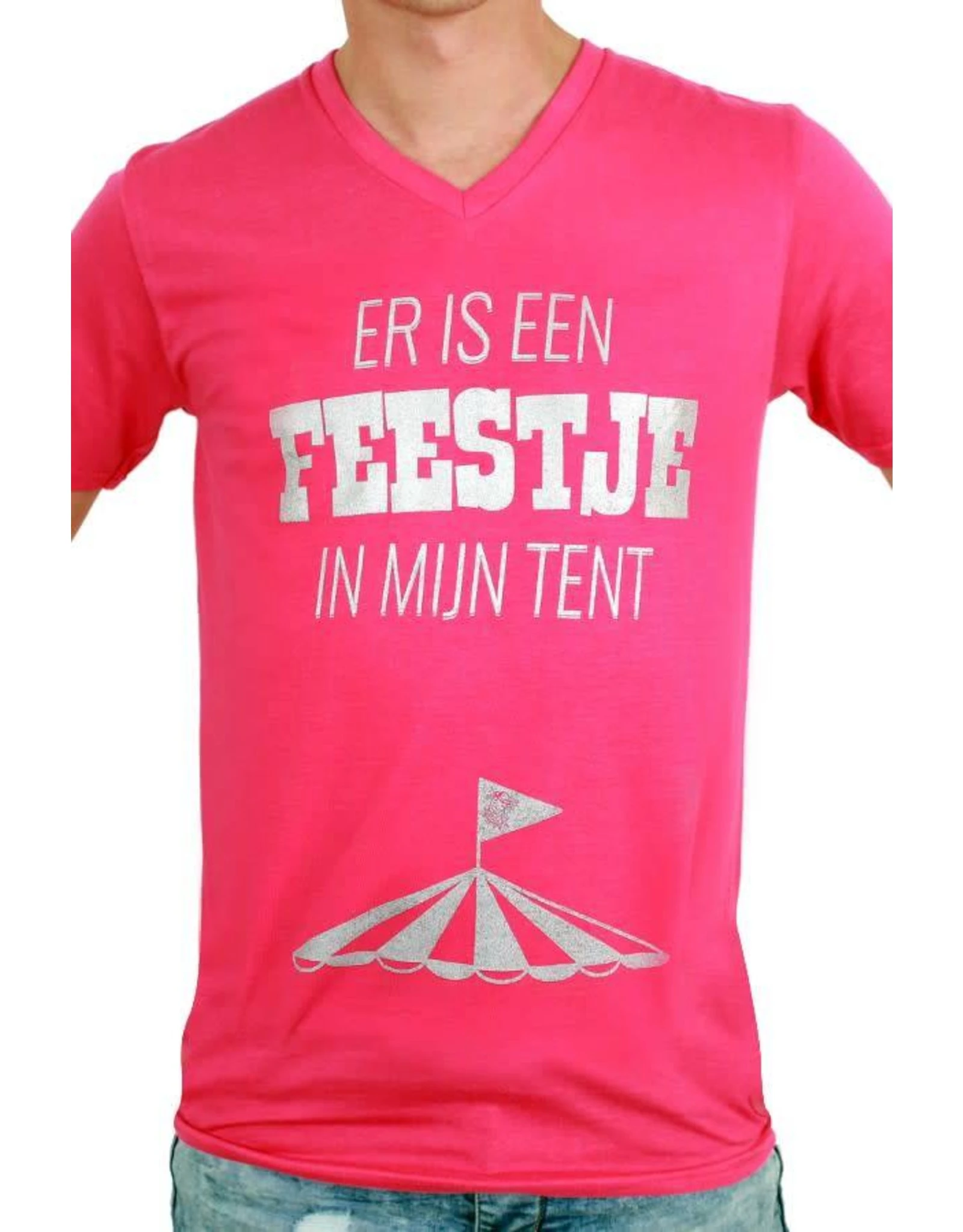 T-shirt heren roze “Er is een feestje in mijn tent”