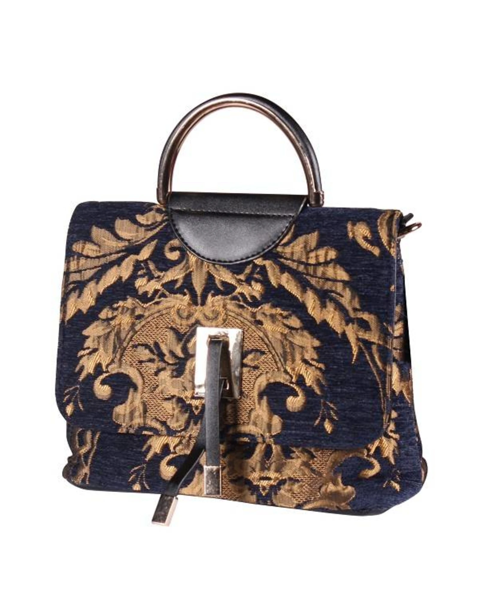 Tasje deluxe ”Jacky” Brokaat goud, Brocaat blauw/goud, Handtas