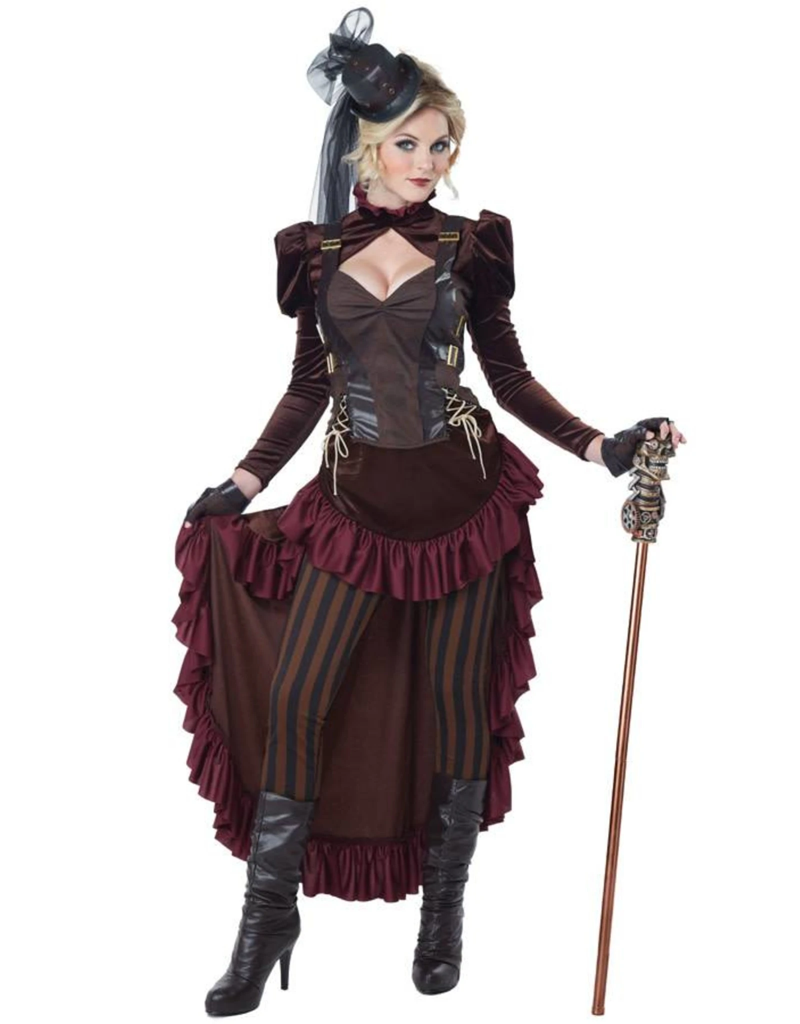 Dit kostuum bestaat uit een jurk, corset, lange jurk, legging, vingerloze handschoenen, hoedje.
