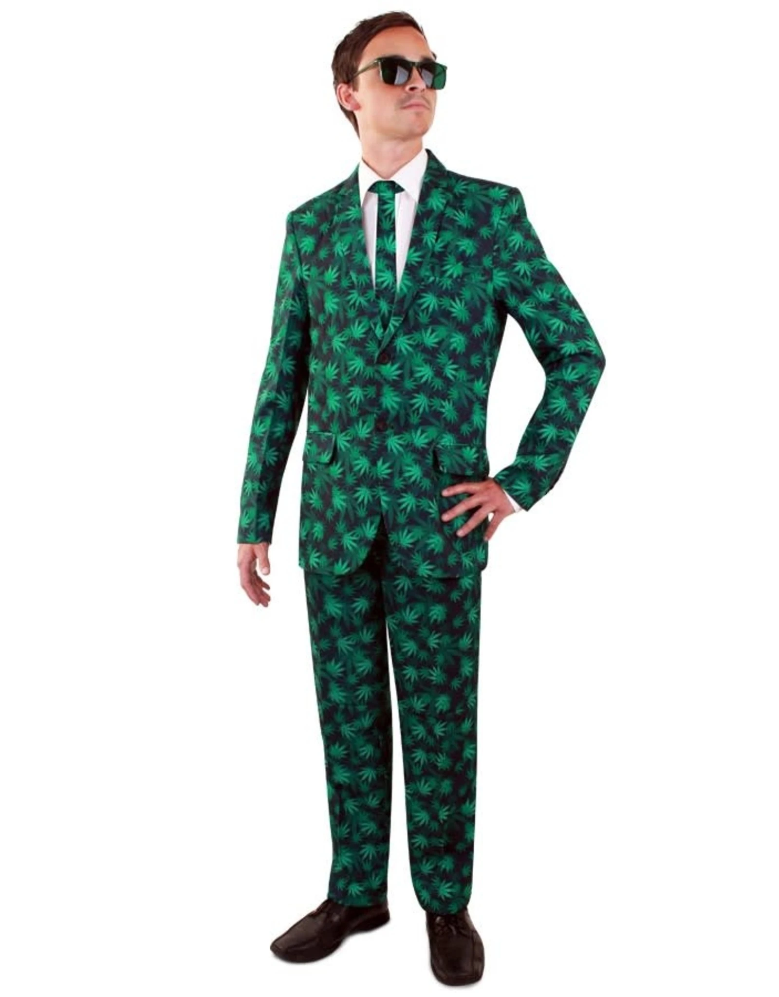 Dit kostuum bestaat uit een broek, colbert en stropdas.