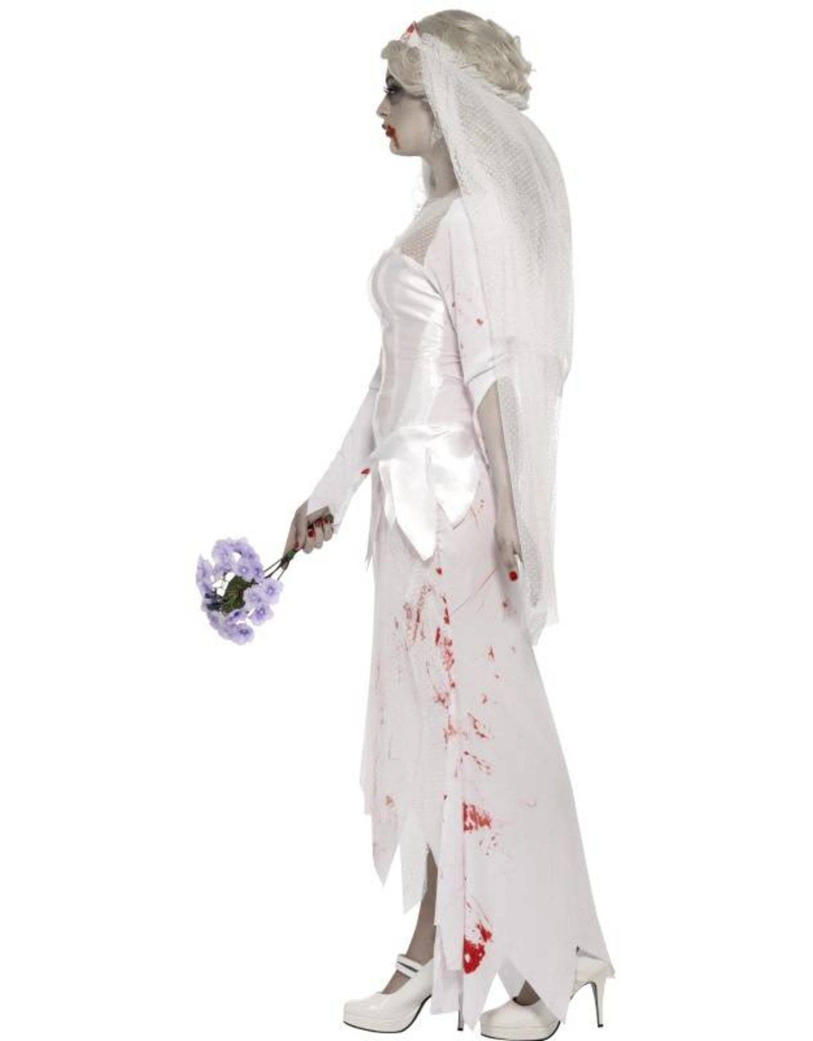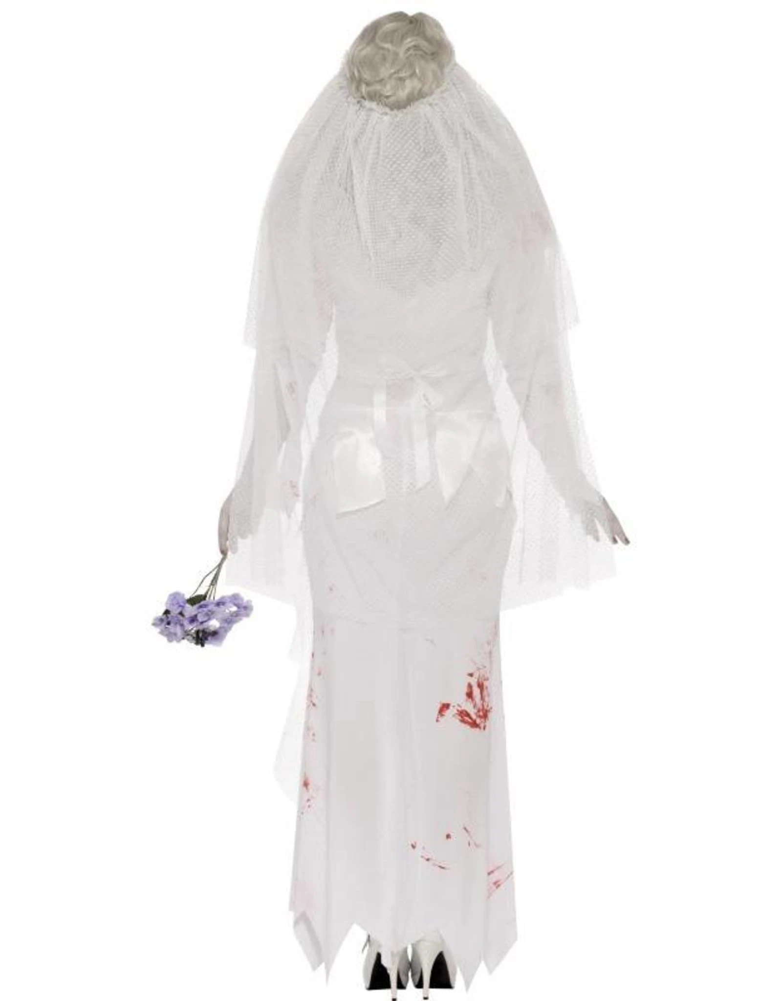 Dit kostuum bestaat uit een jurk, sluier en boeket,